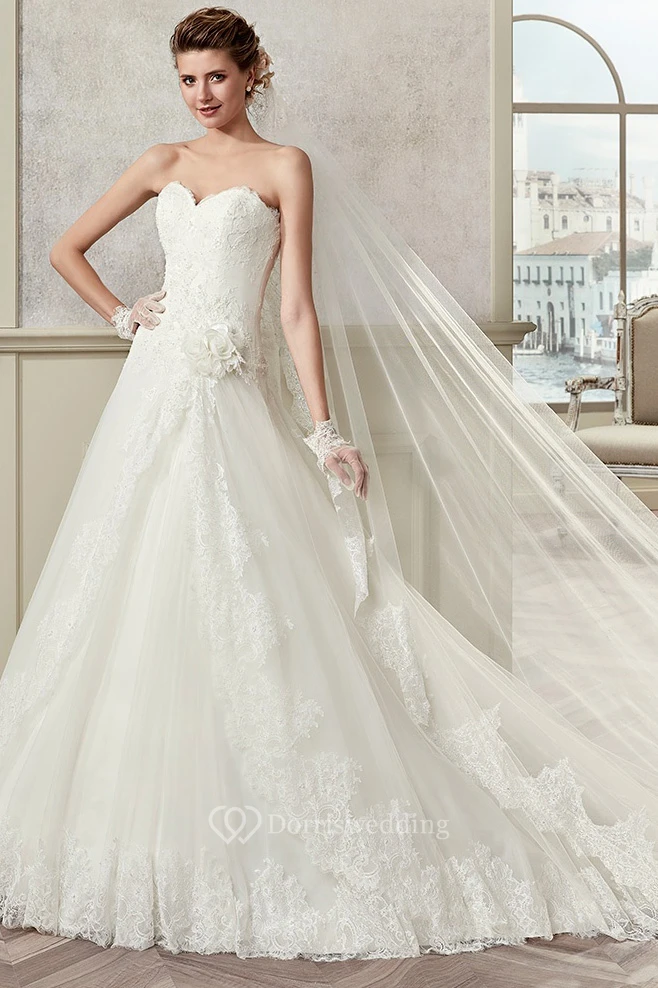 Sweetheart A-Line Ruching Bridal Gown With Floral Waist And Lace-Up Back
