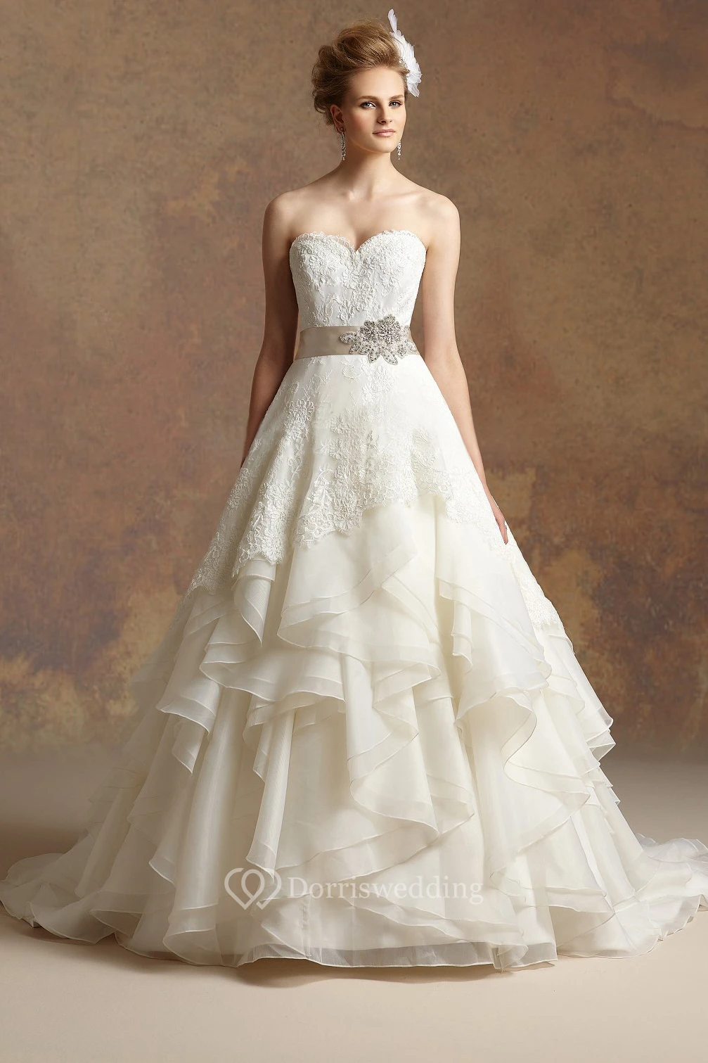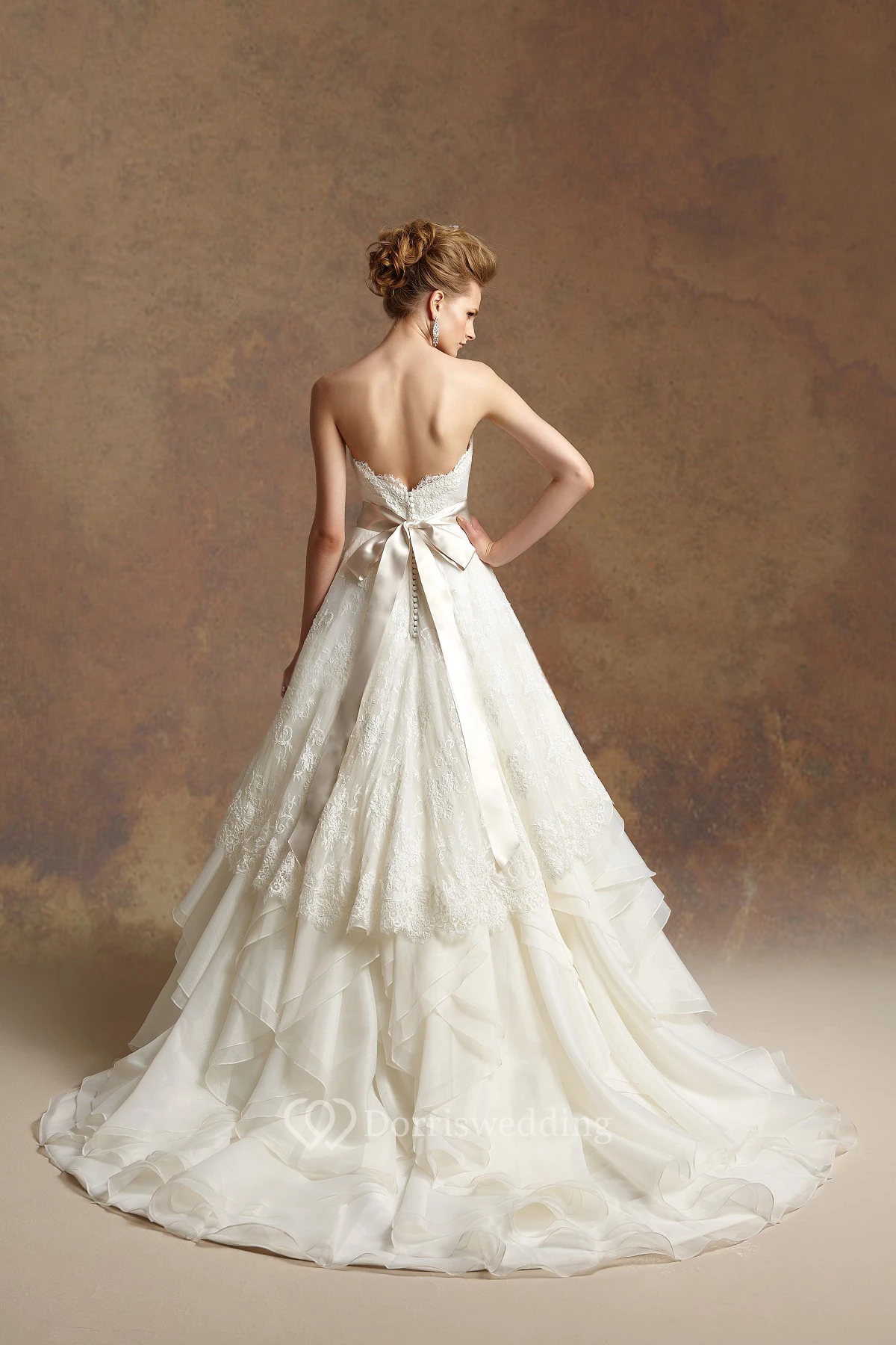 Sweetheart A-Line Ruffled Wedding Dress With Appliques And Bow
