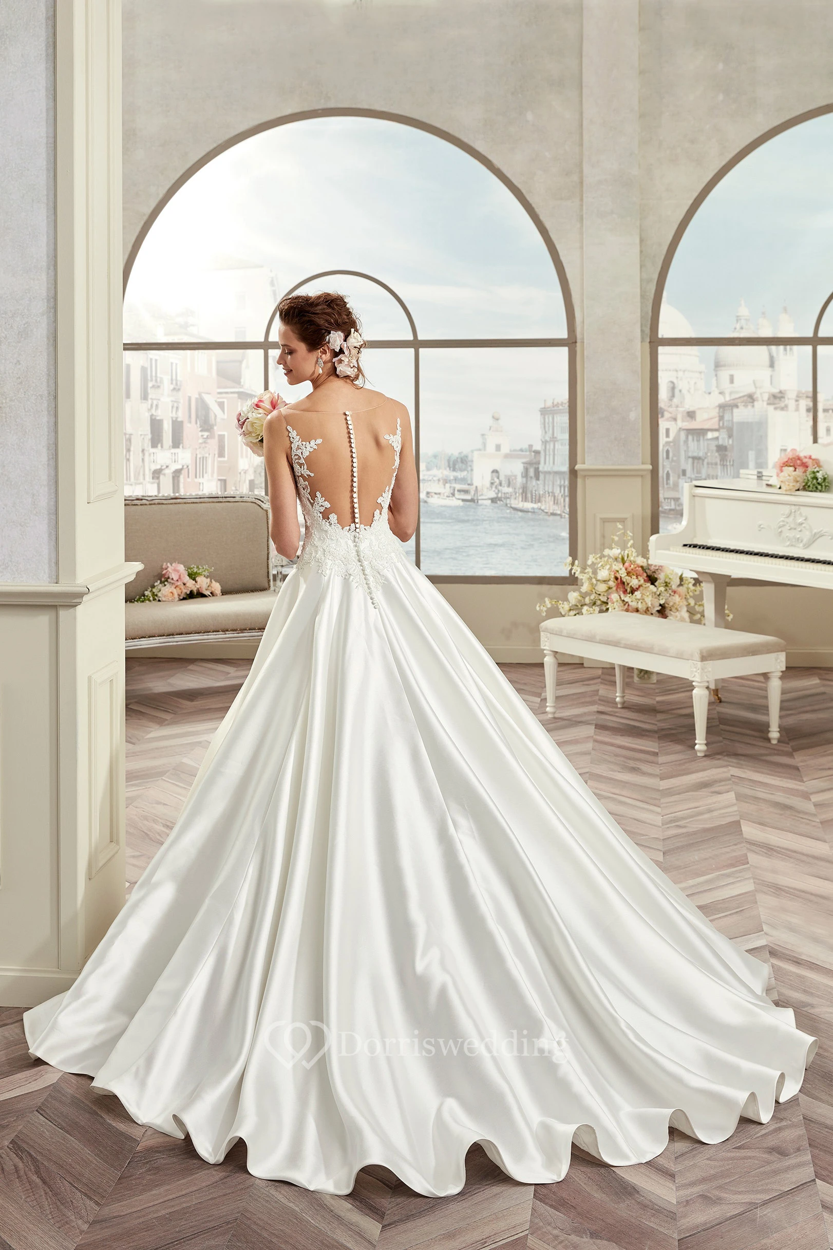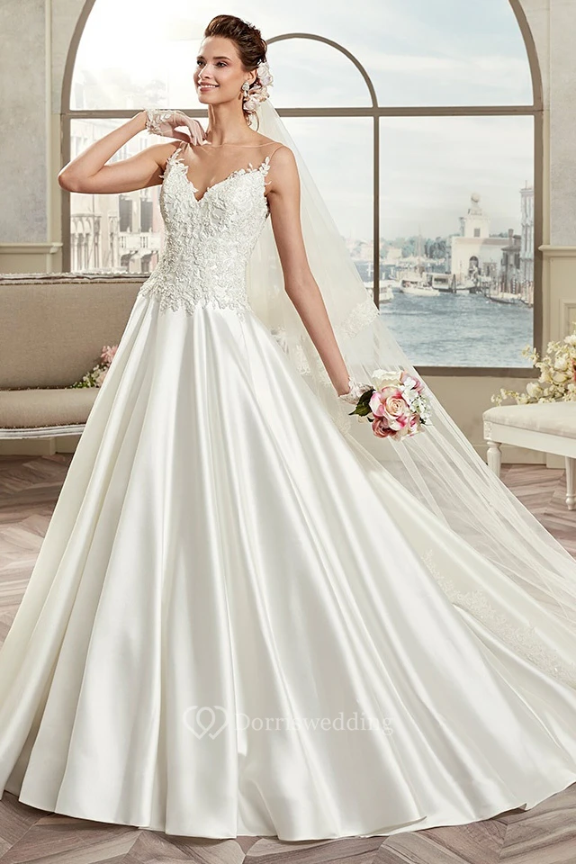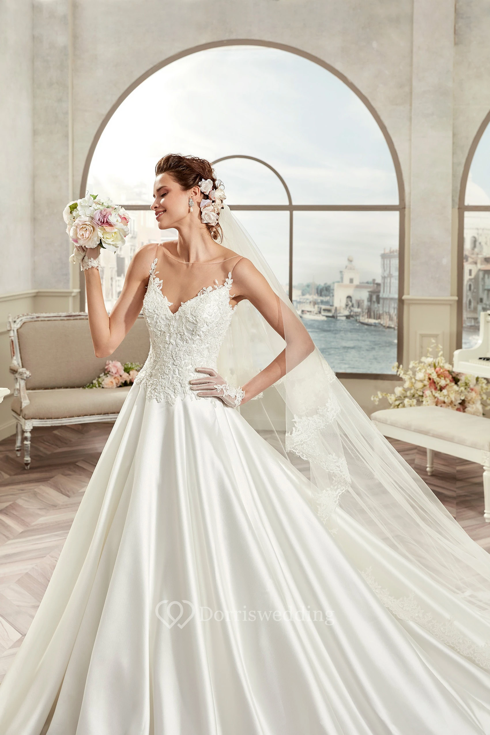 Sweetheart A-Line Satin Bridal Gown With Lace Bodice And Spaghetti Straps