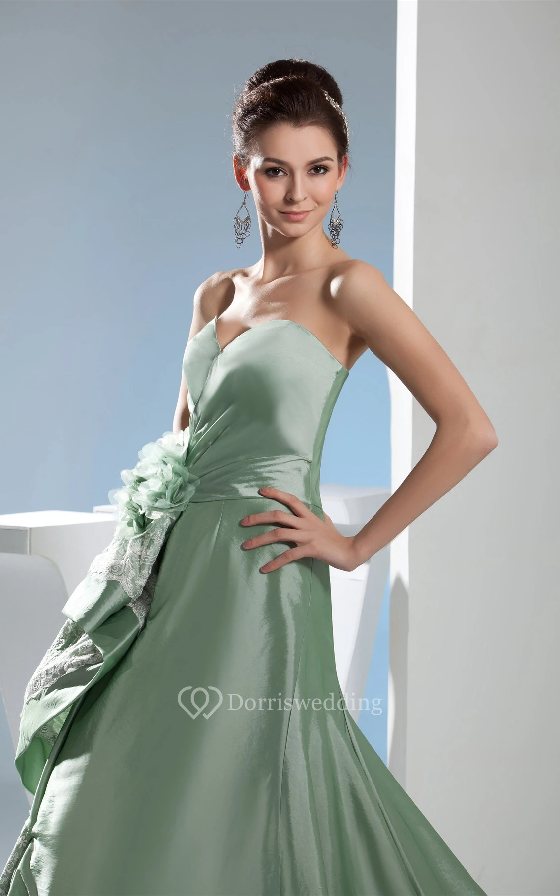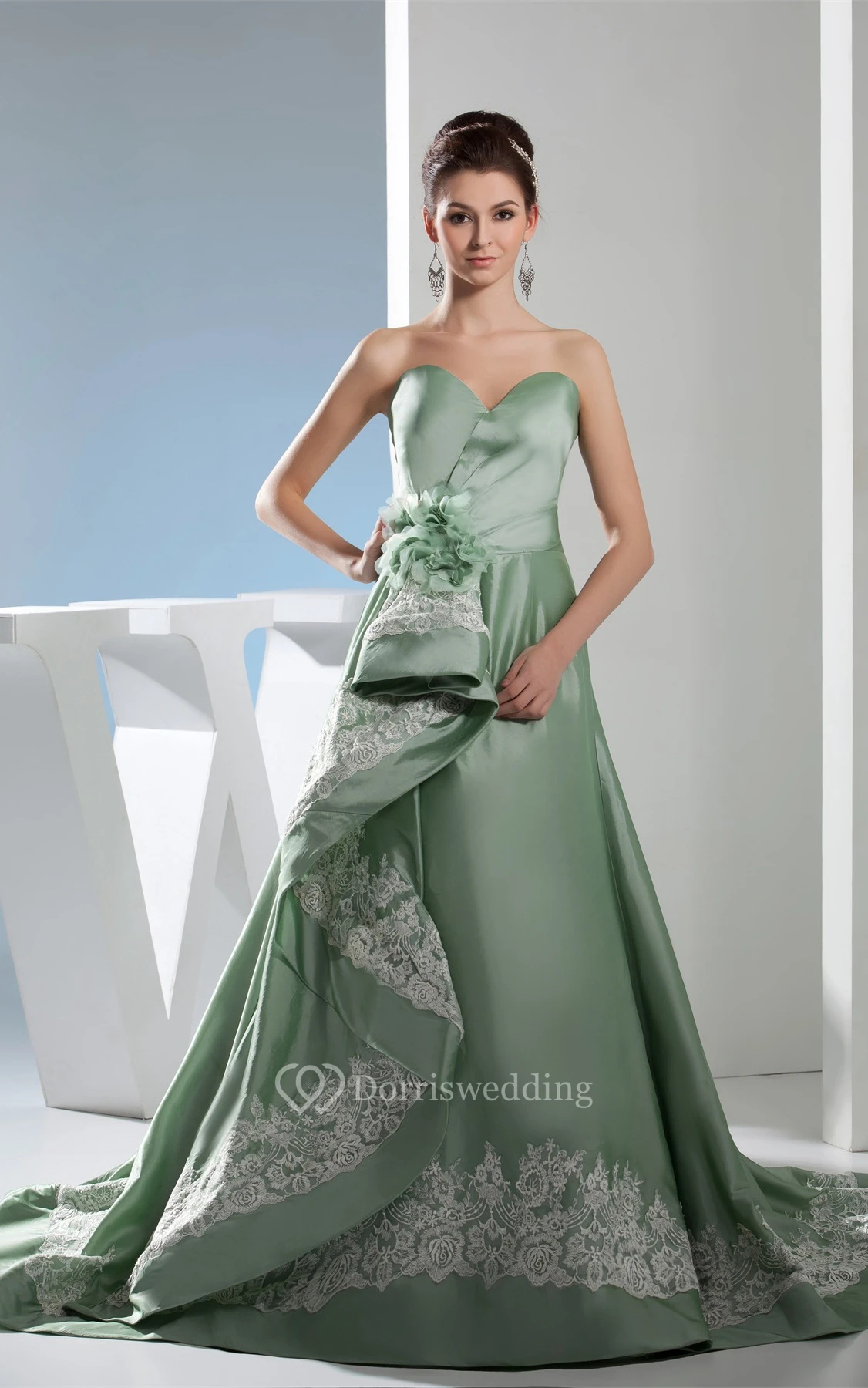 Sweetheart A-Line Satin Flower and Gown With Appliques