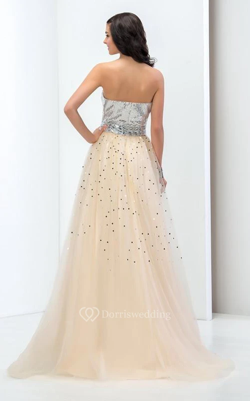 Sweetheart A-Line Sequins Beaded Floor-Length Prom Dress