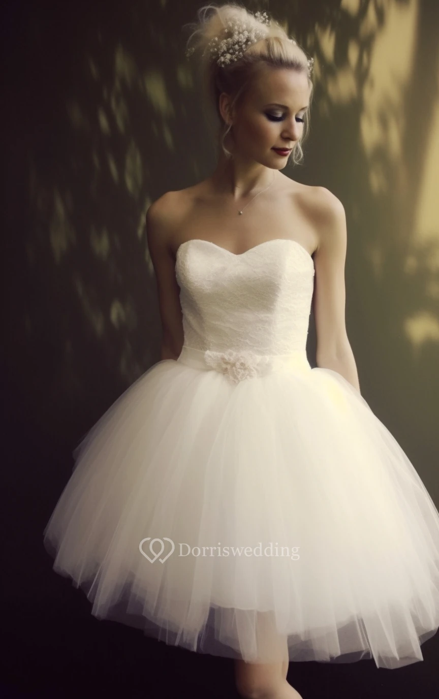 Sweetheart A-line Short A-line Tulle Ruffle Wedding Dress