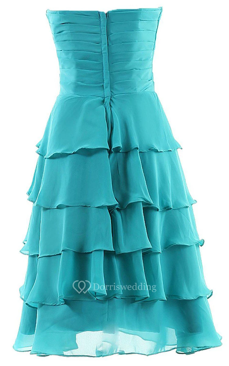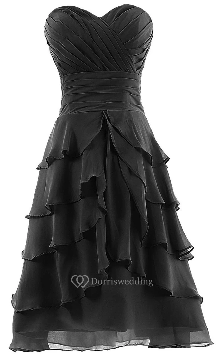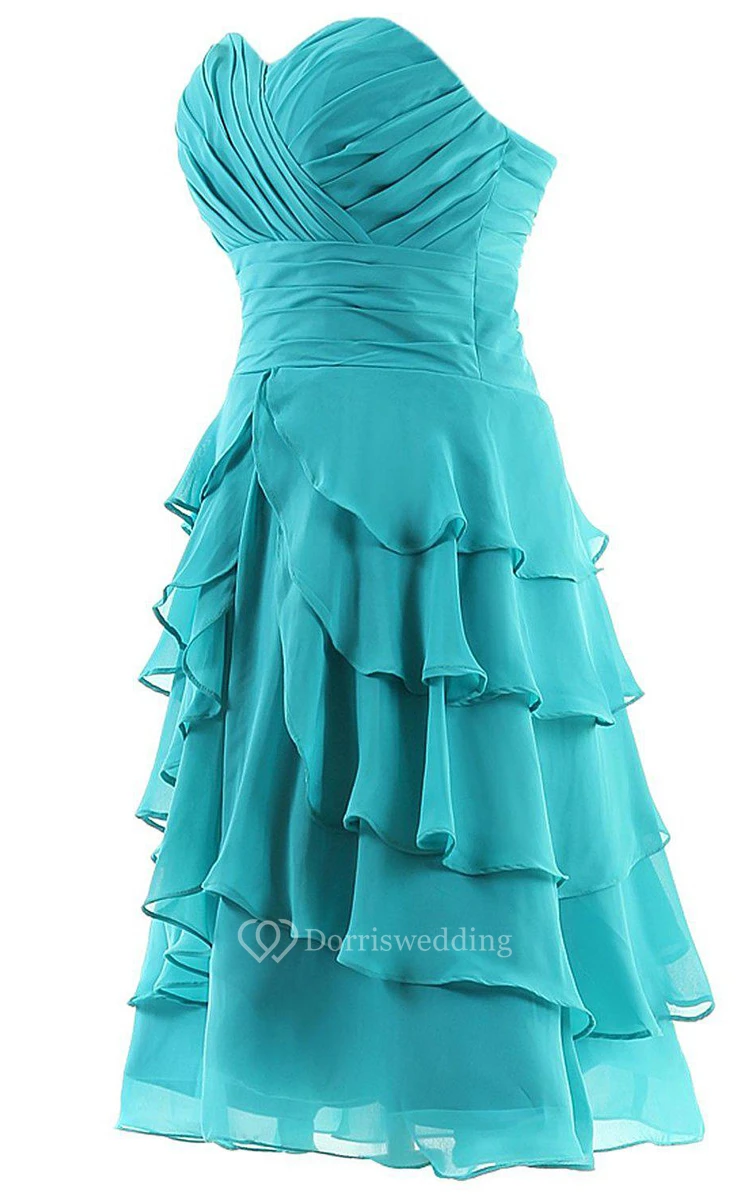 Sweetheart A-line Tiered Chiffon Dress With Pleats