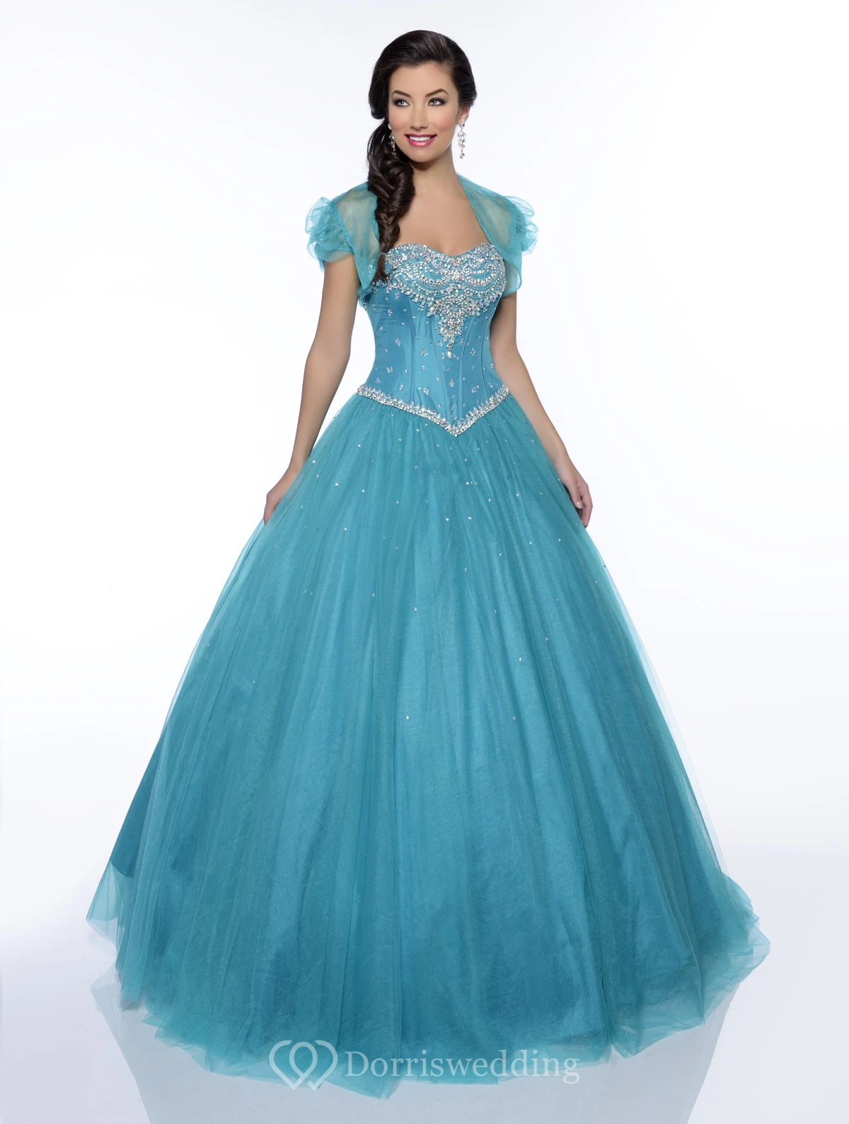 Ball Gown Floor-Length Cap Tulle Crystal Detailing Ruffles Lace-Up Corset Back Dress
