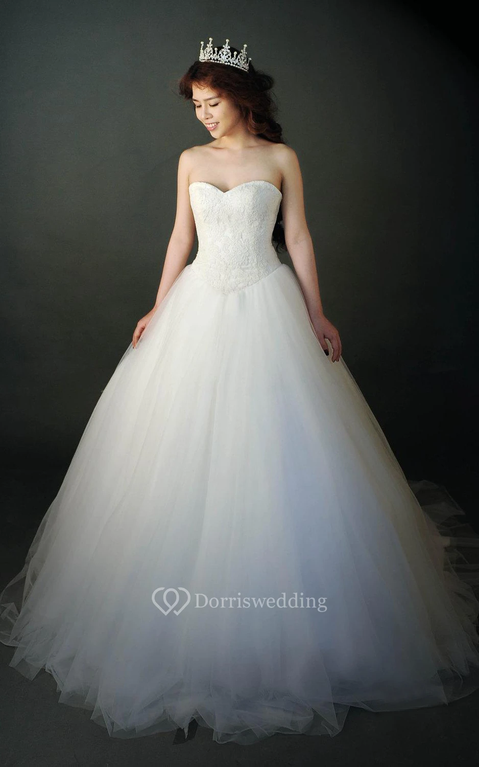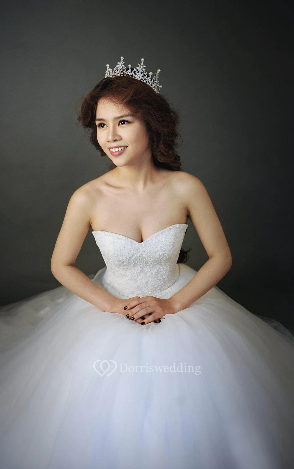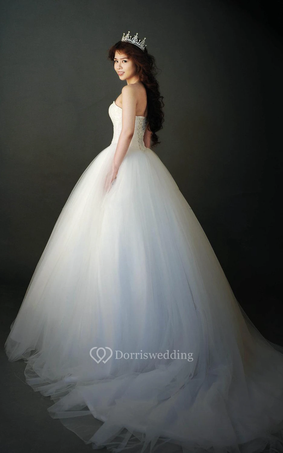 Sweetheart A-Line Tulle Dress With Lace Bodice and Lace-Up Back