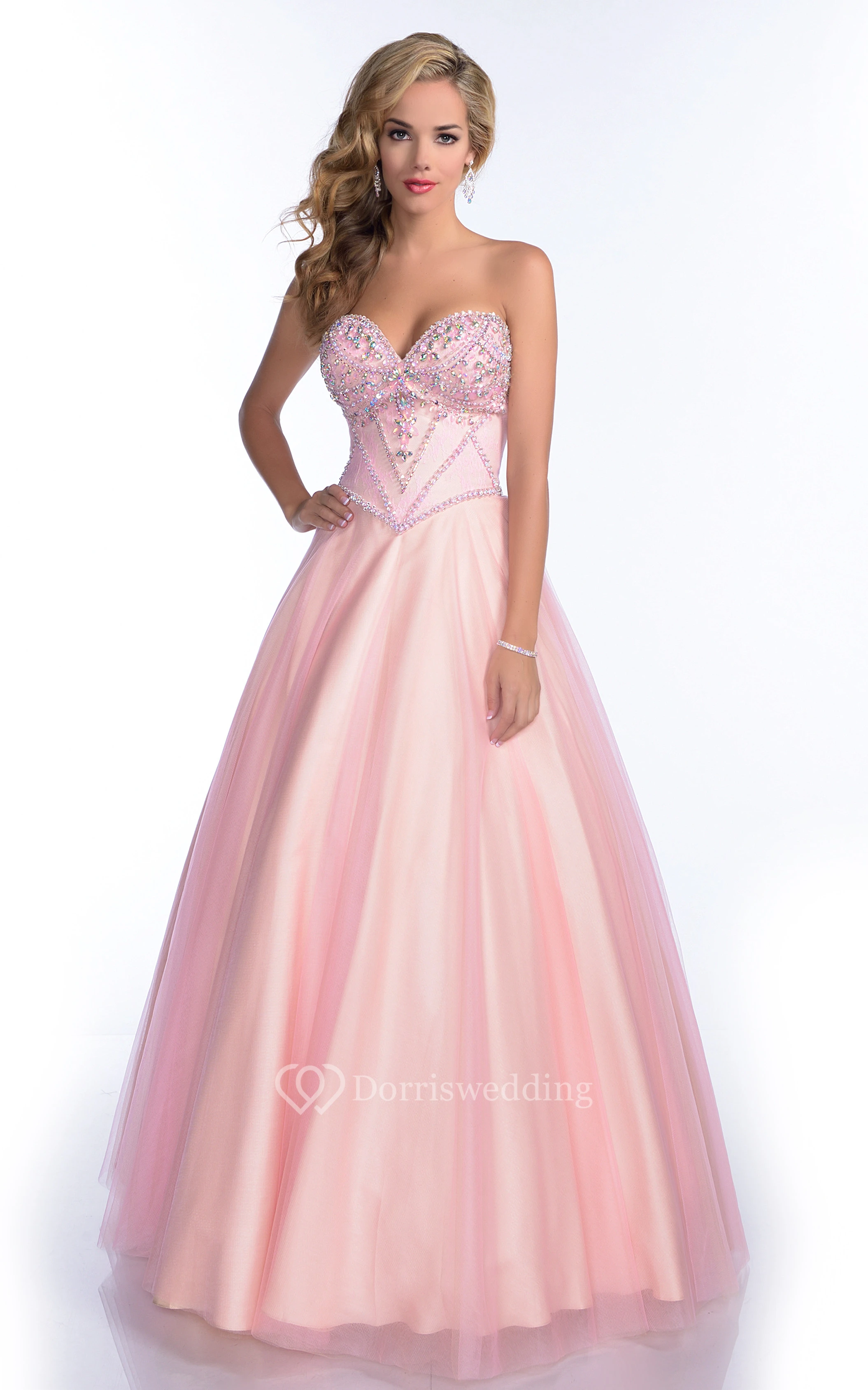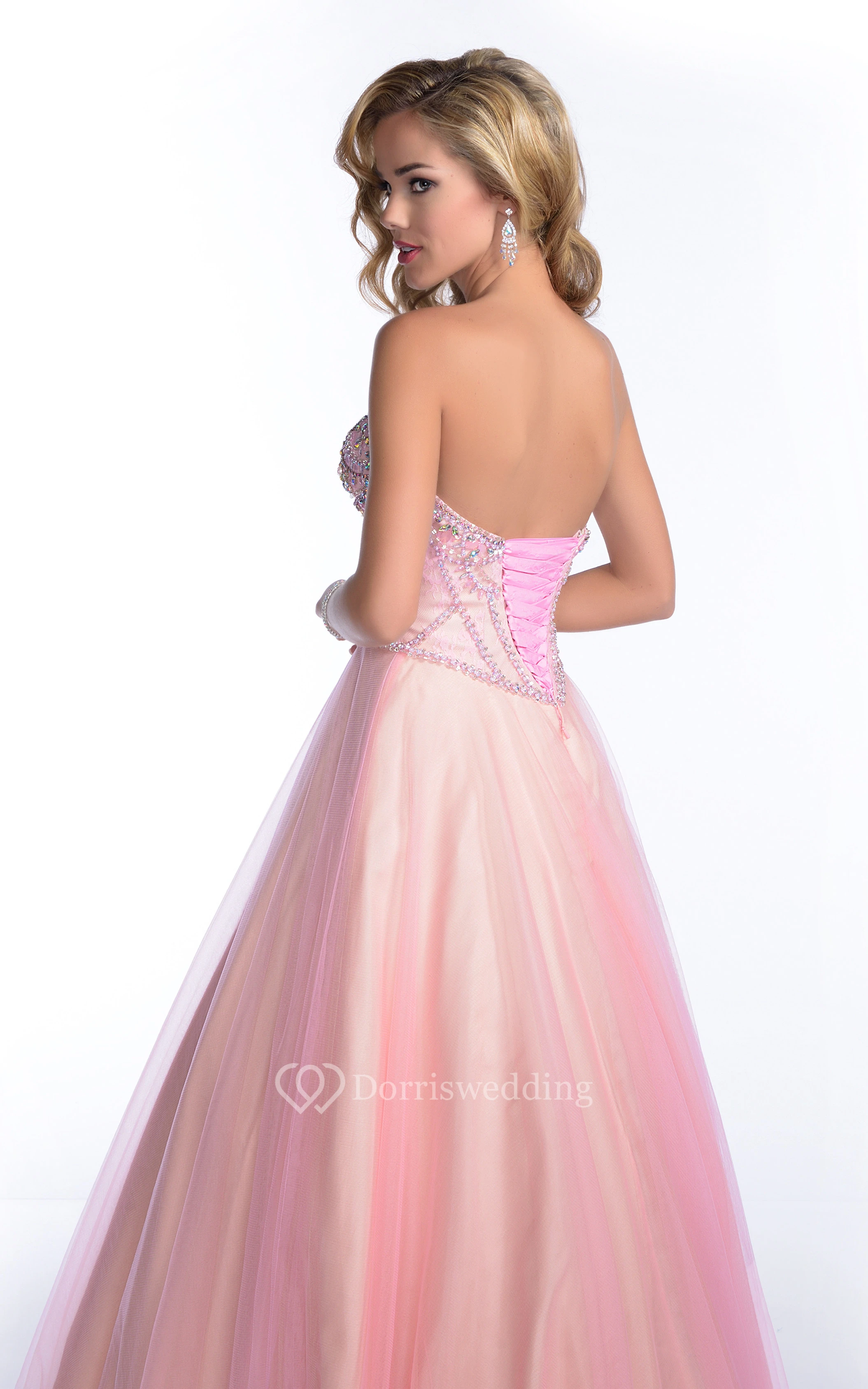 Sweetheart A-Line Tulle Gown With Rhinestone Bust And Lace-Up Back
