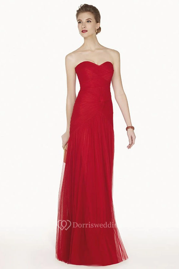 Sweetheart A-Line Tulle Long Prom Dress With Criss Cross Bodice