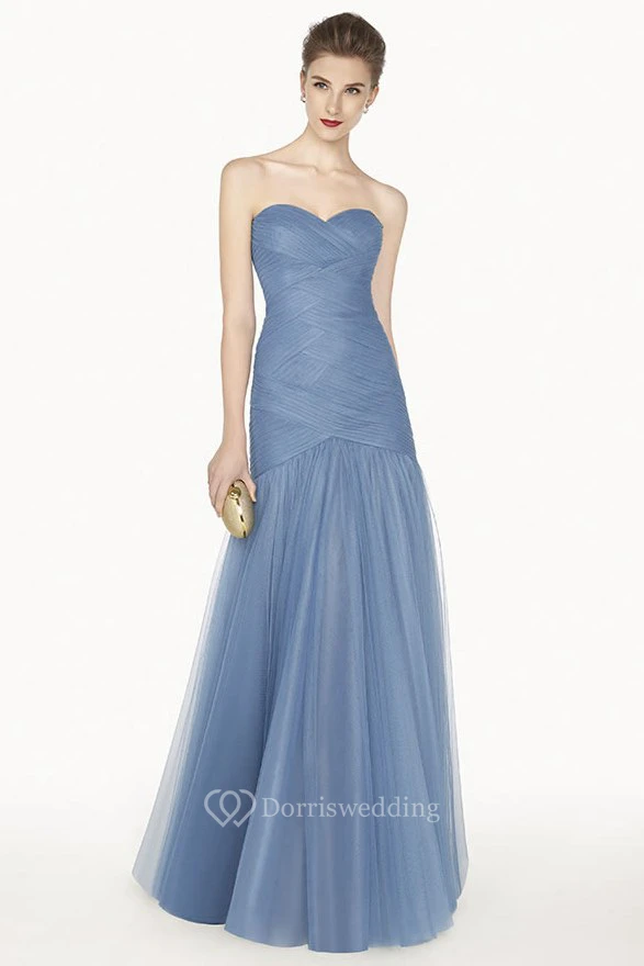Sweetheart A-Line Tulle Long Prom Dress With Criss Cross Top