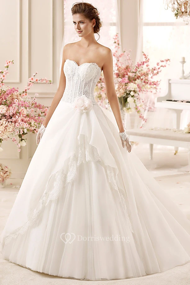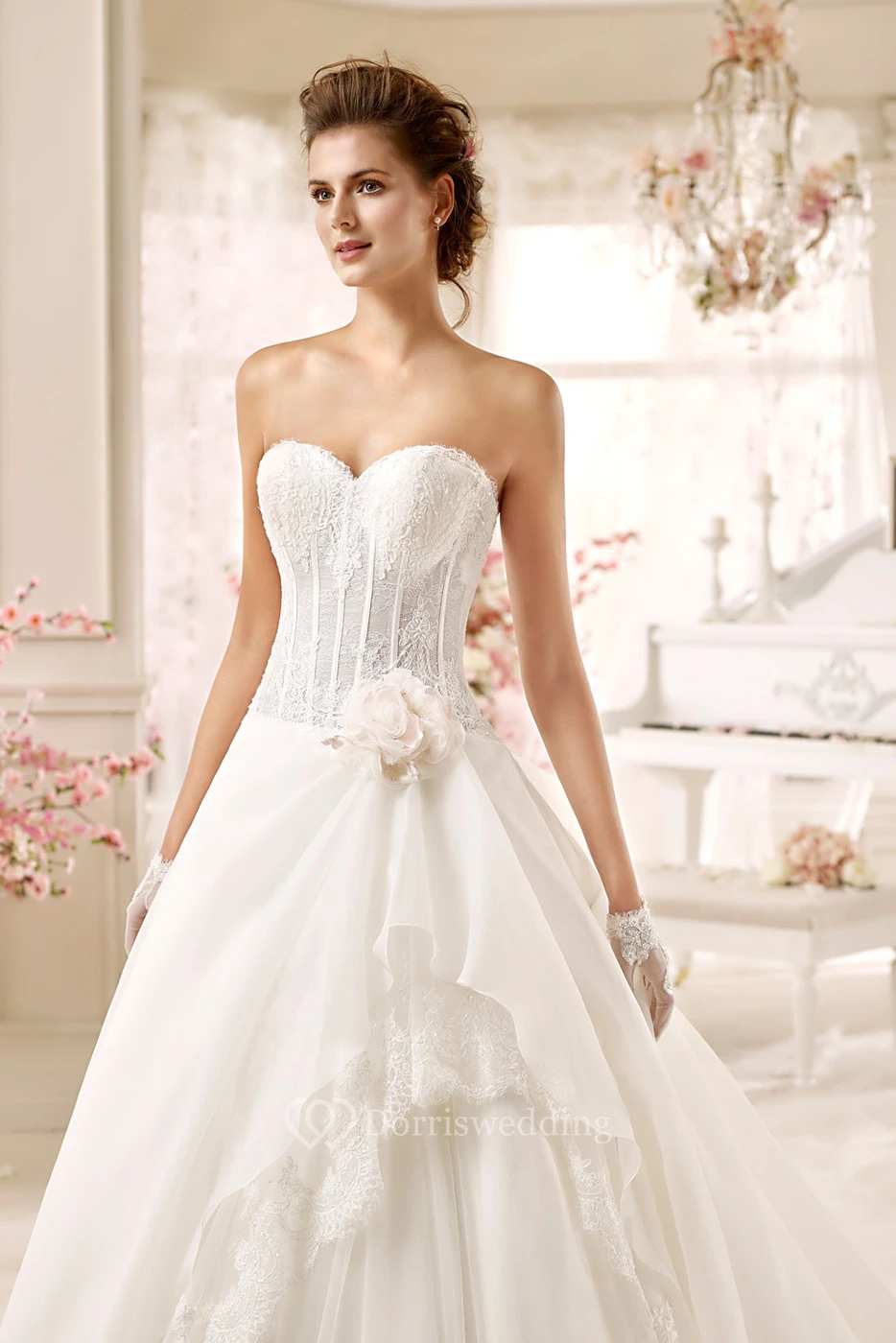 Sweetheart A-line Wedding Dress with Asymmetrical Ruching and Lace Corset