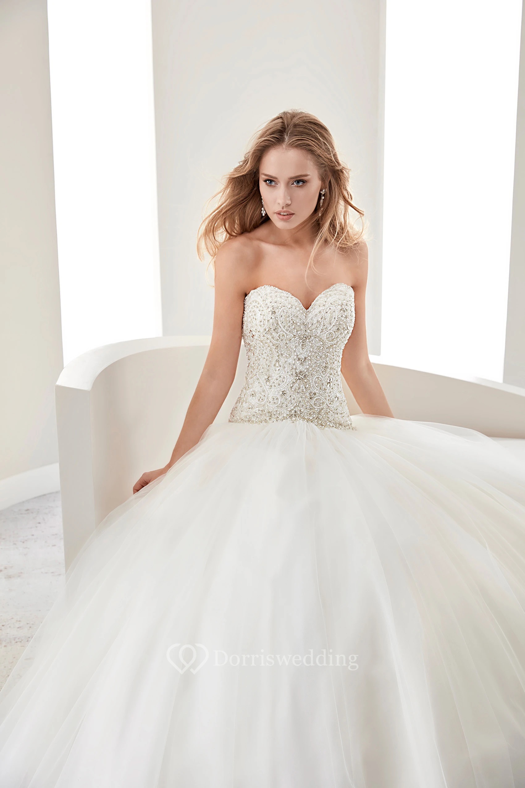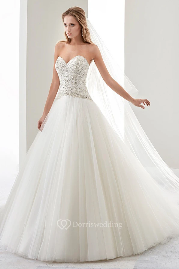 Sweetheart A-line Wedding Dress with Beaded Bodice and Brush Train