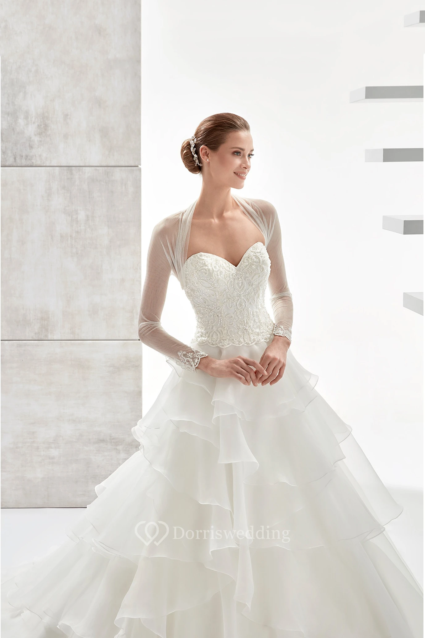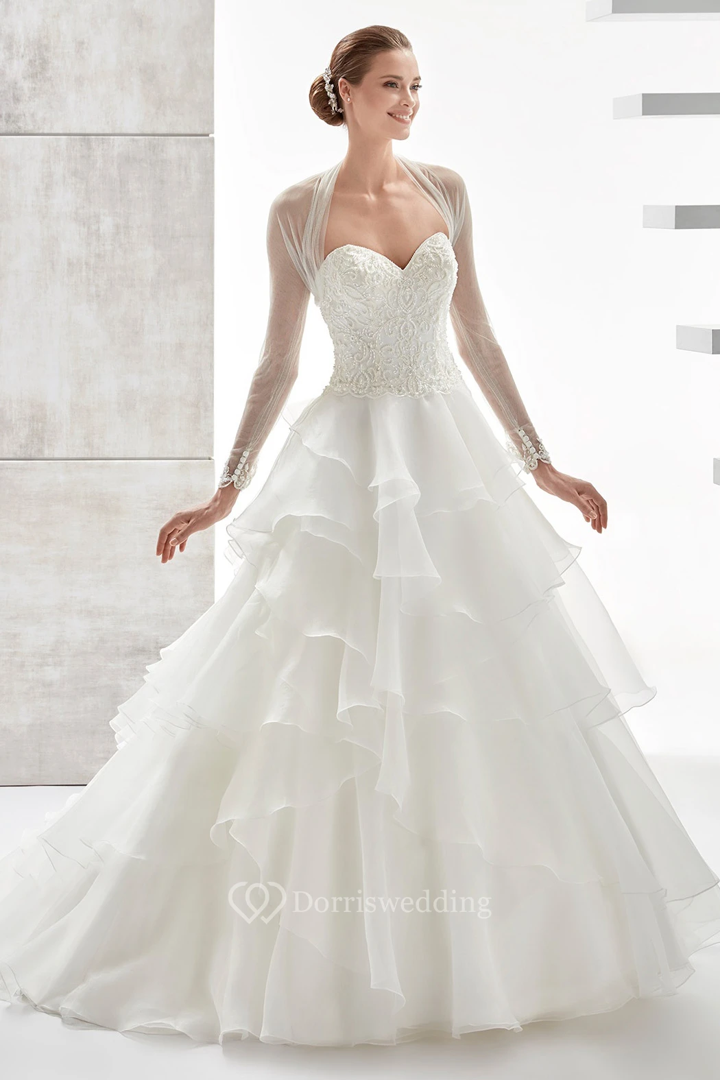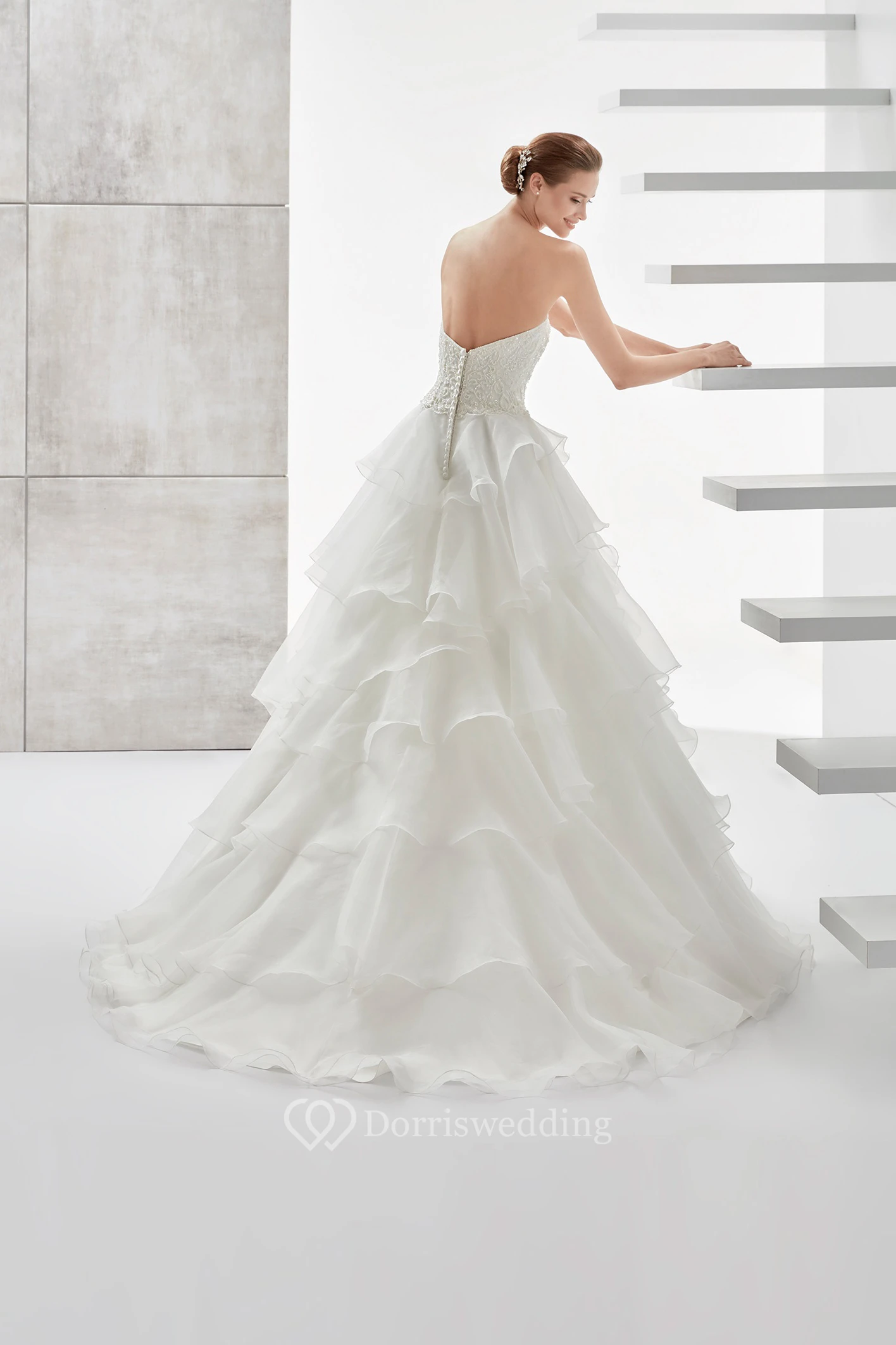 Sweetheart A-line Wedding Dress with Cascading Ruffles and Lace Corset