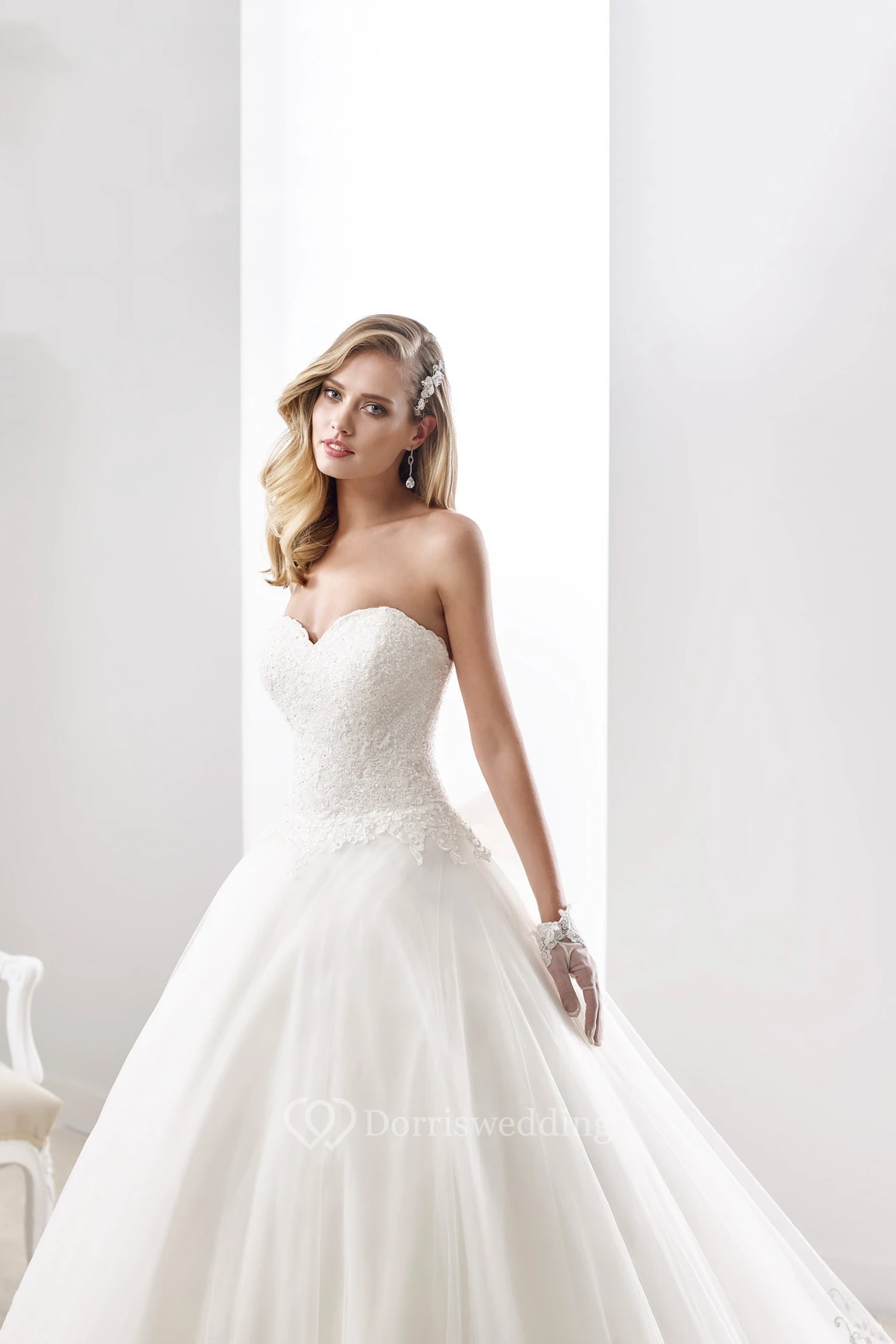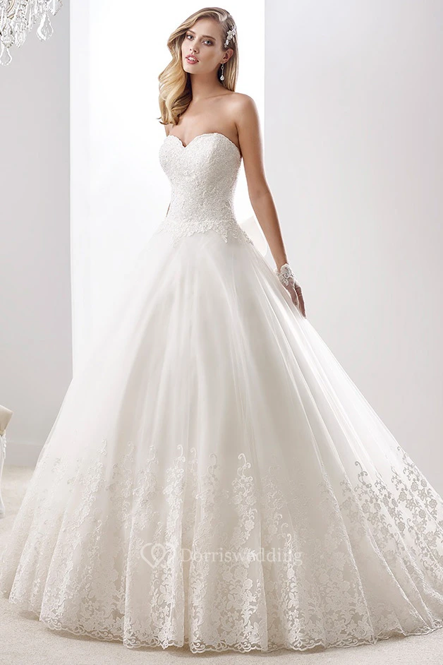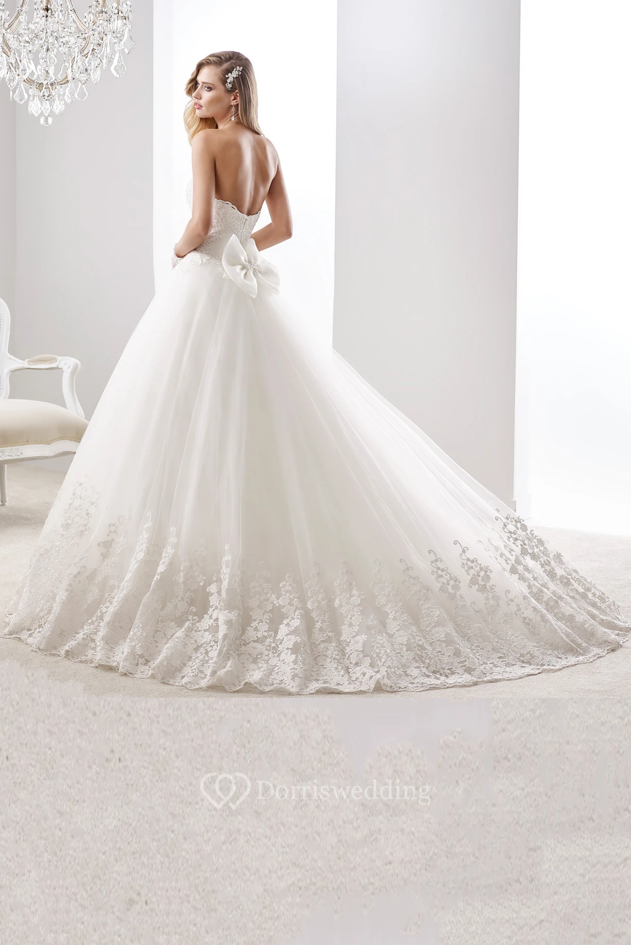 Sweetheart A-line Wedding Gown with Appliques Bodice and Back Bow