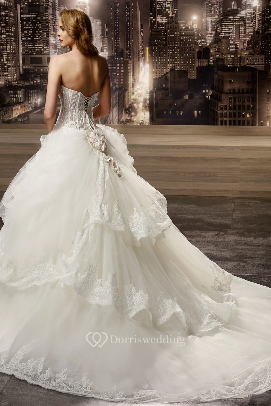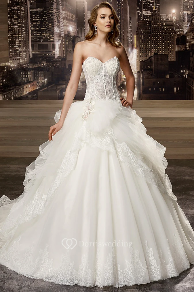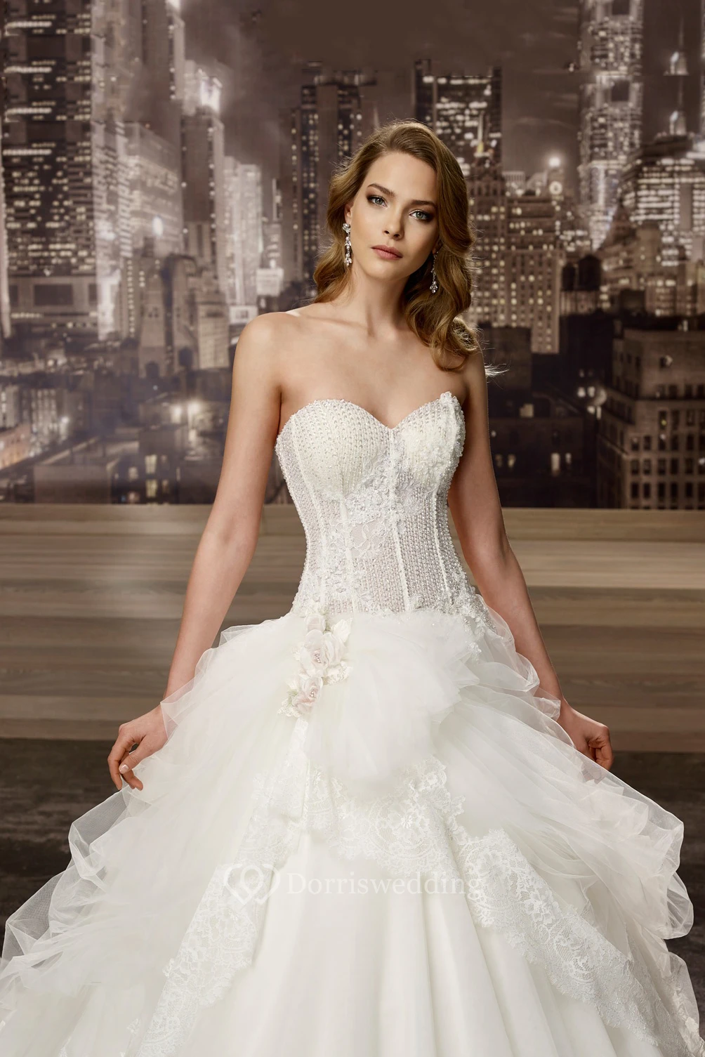 Sweetheart A-line Wedding Gown with Beaded Corset and Asymmetrical Ruffles