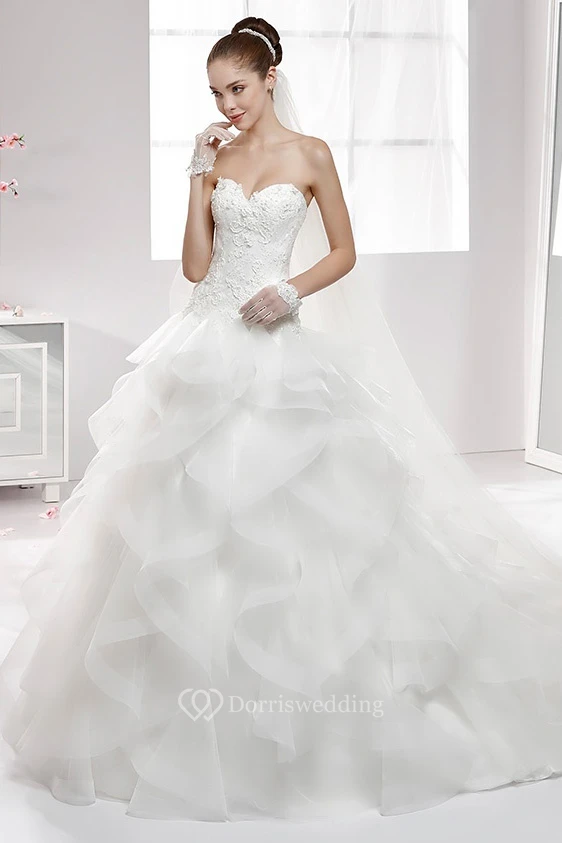 Sweetheart A-Line Wedding Gown With Cascading Ruffles and Lace Appliqued Corset
