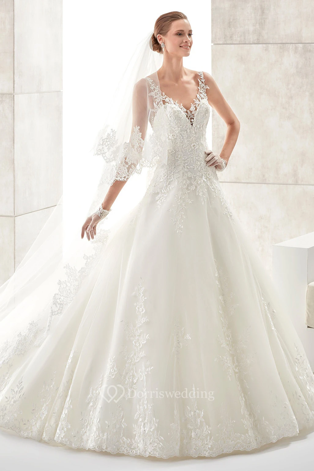 • Hemline/Train: Floor-length