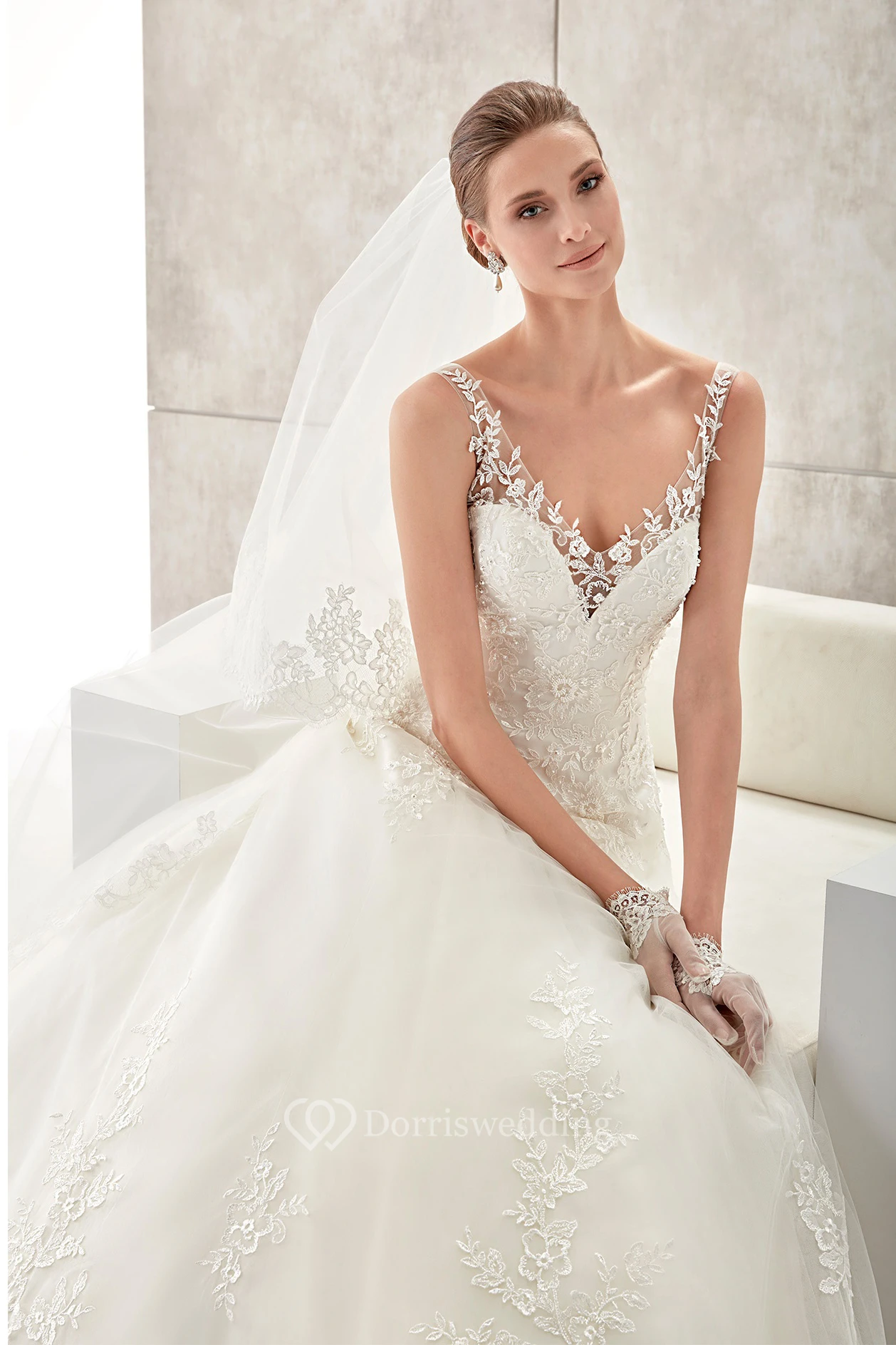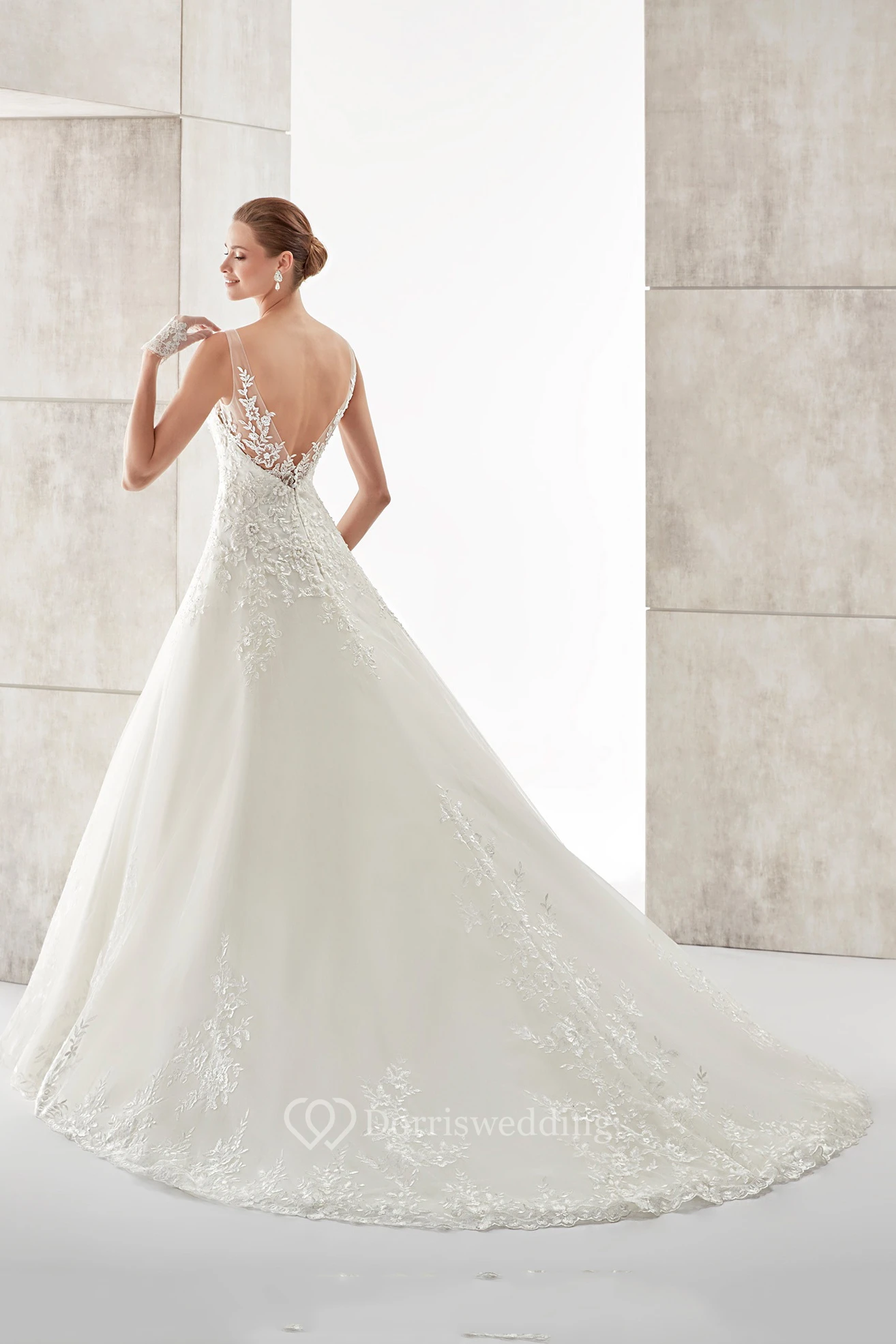 Sweetheart A-line Wedding Gown with Floral Straps and Low-v Back