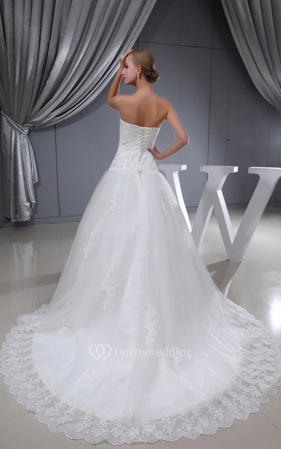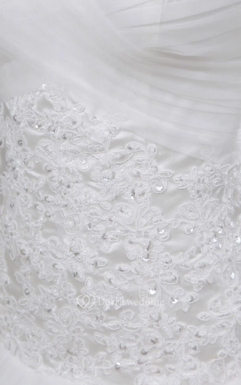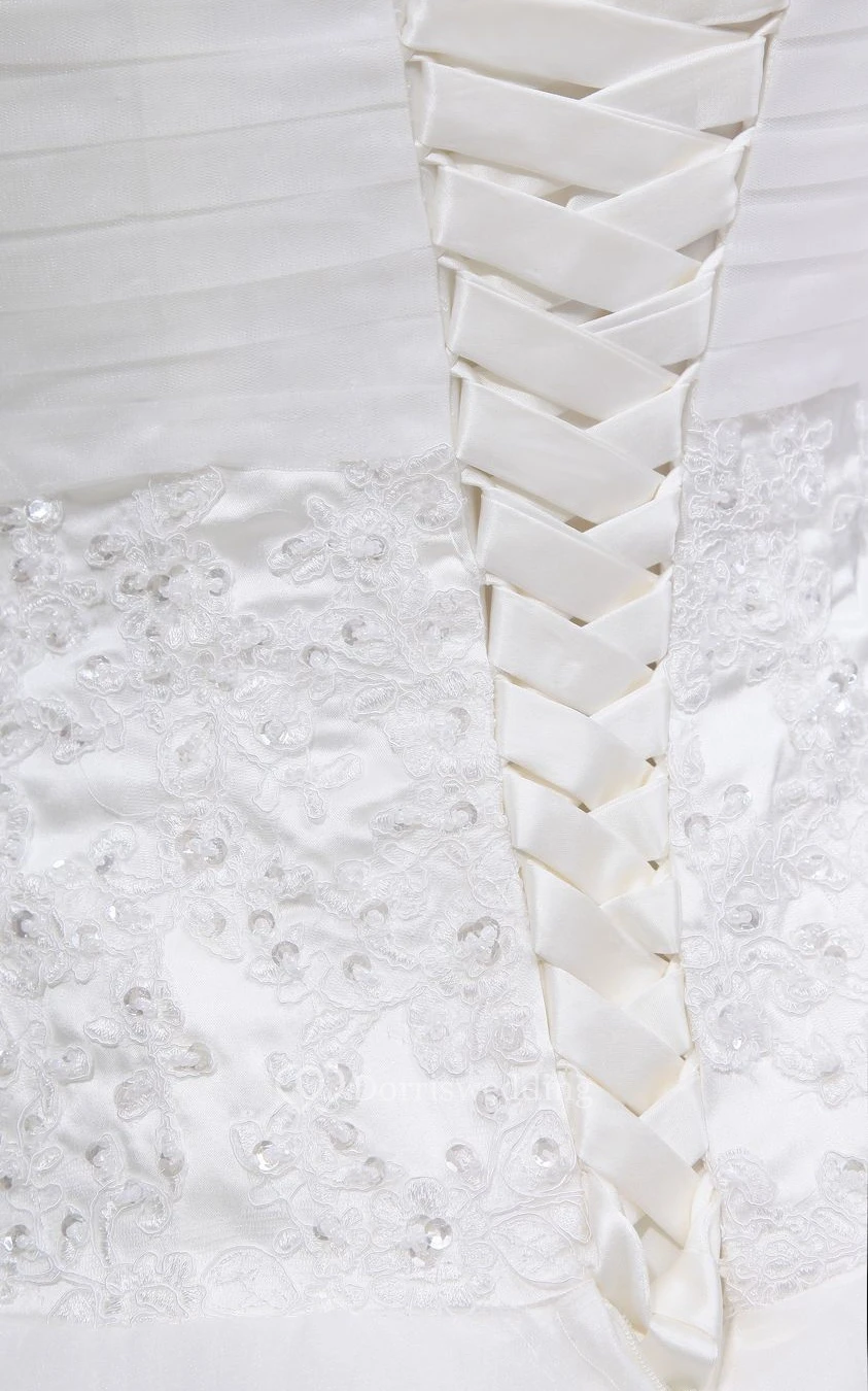 Sweetheart Appliqued A-Line Dress With Tulle Overlay and Corset Back