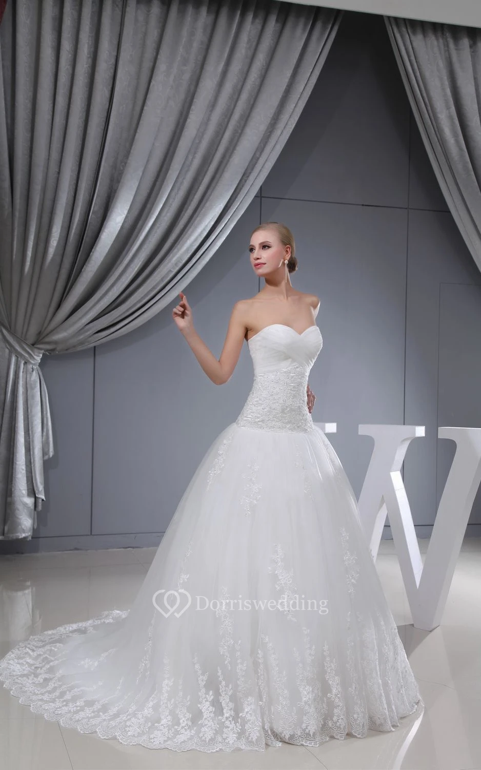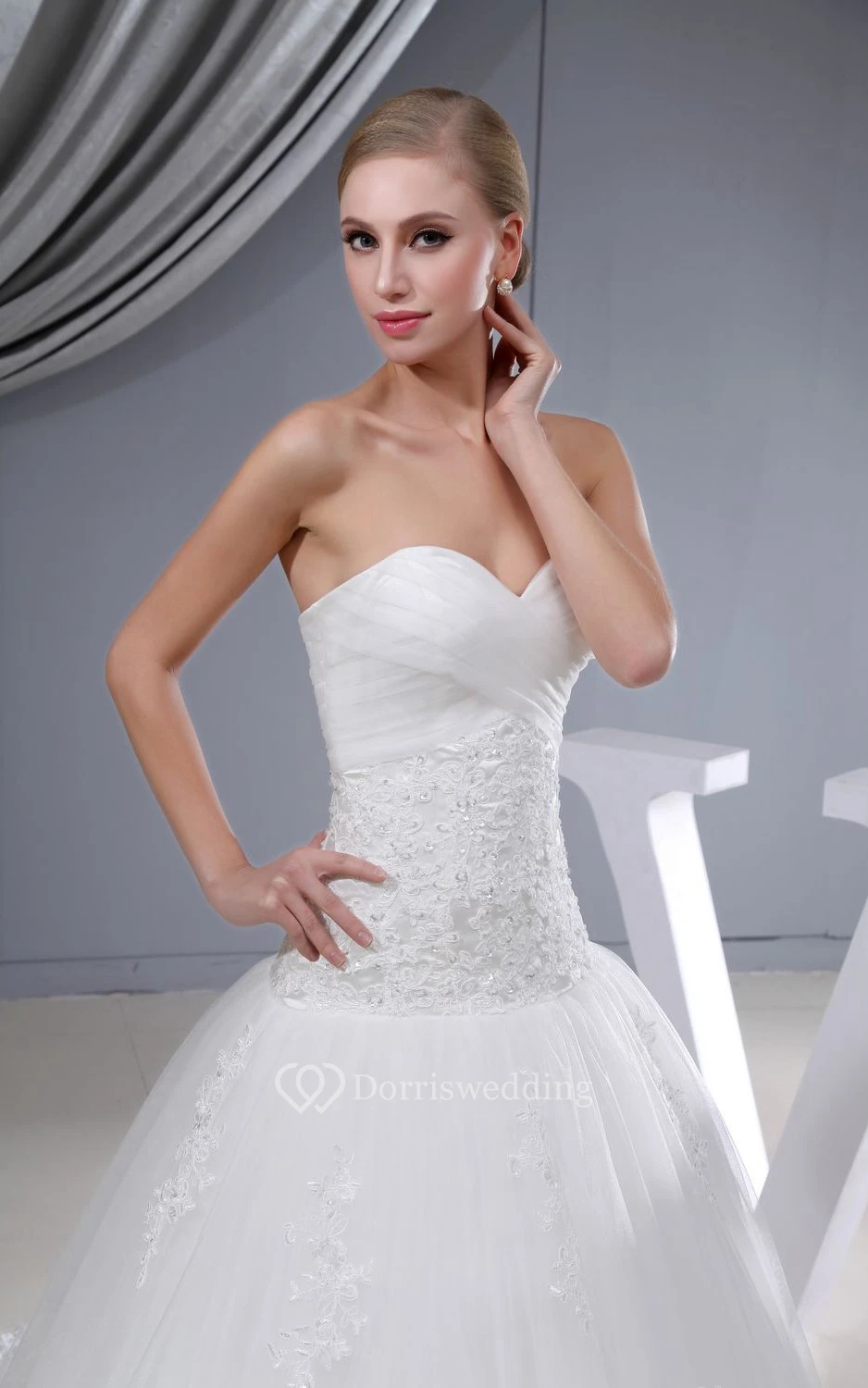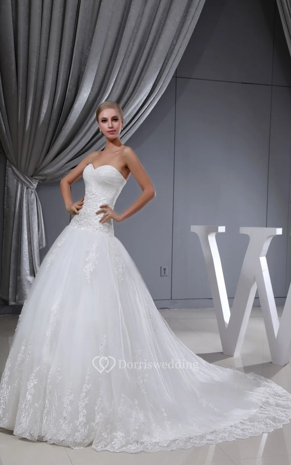Sweetheart Appliqued A-Line Dress With Tulle Overlay and Corset Back