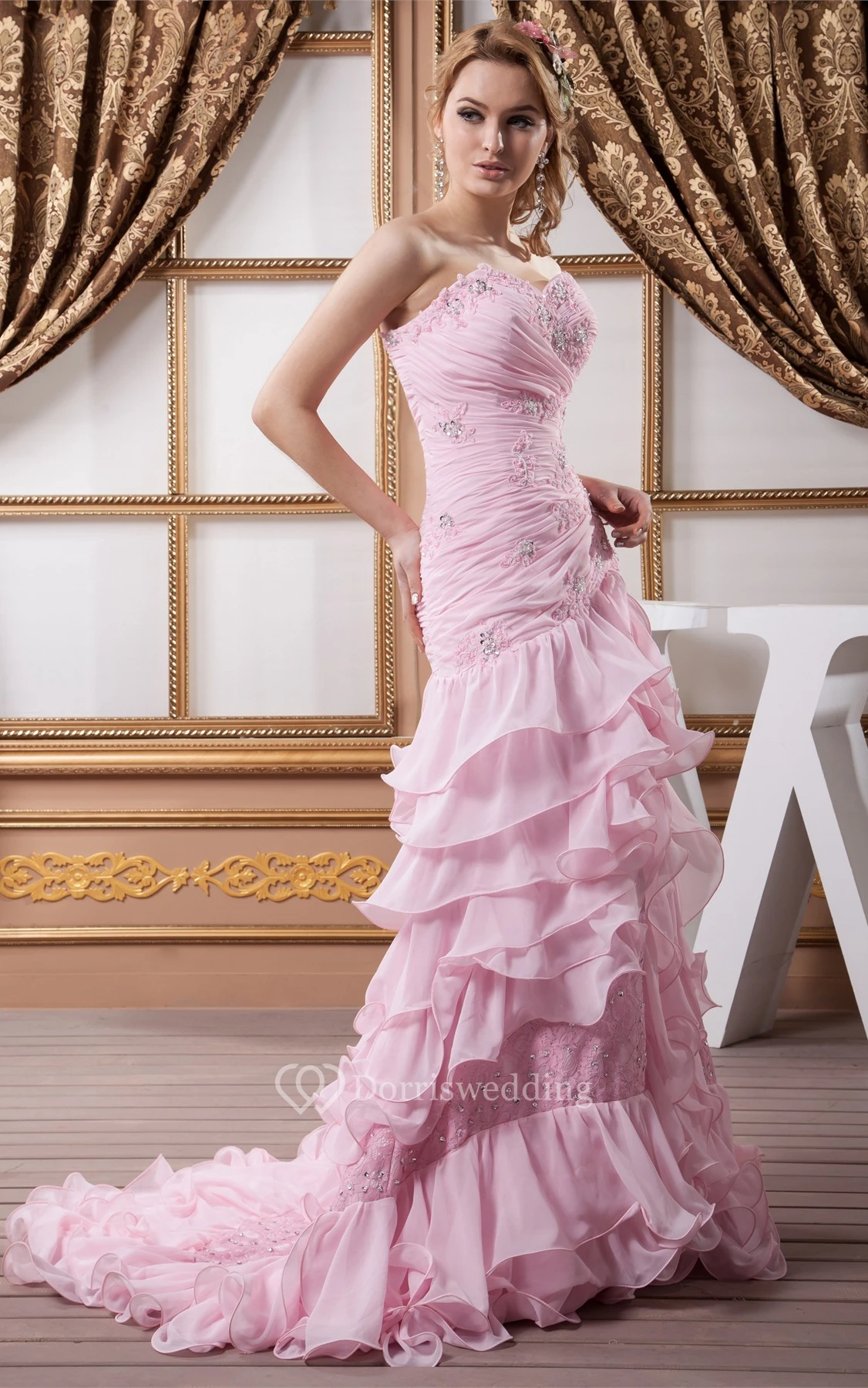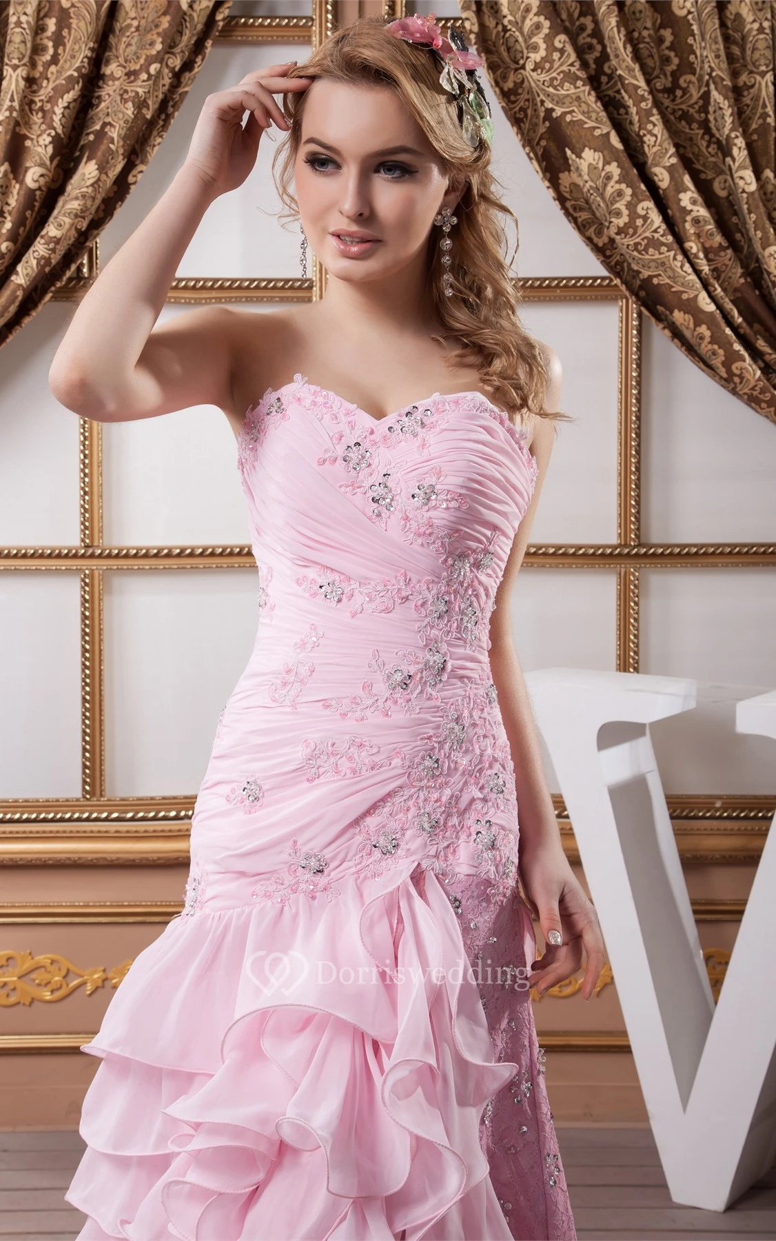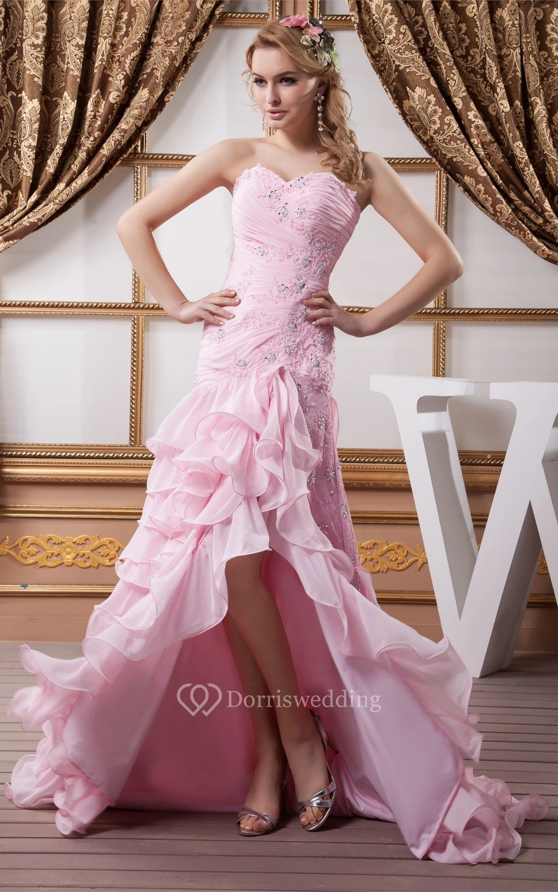 Sweetheart Appliqued Criss-Cross Front Slit and Dress With Tiers