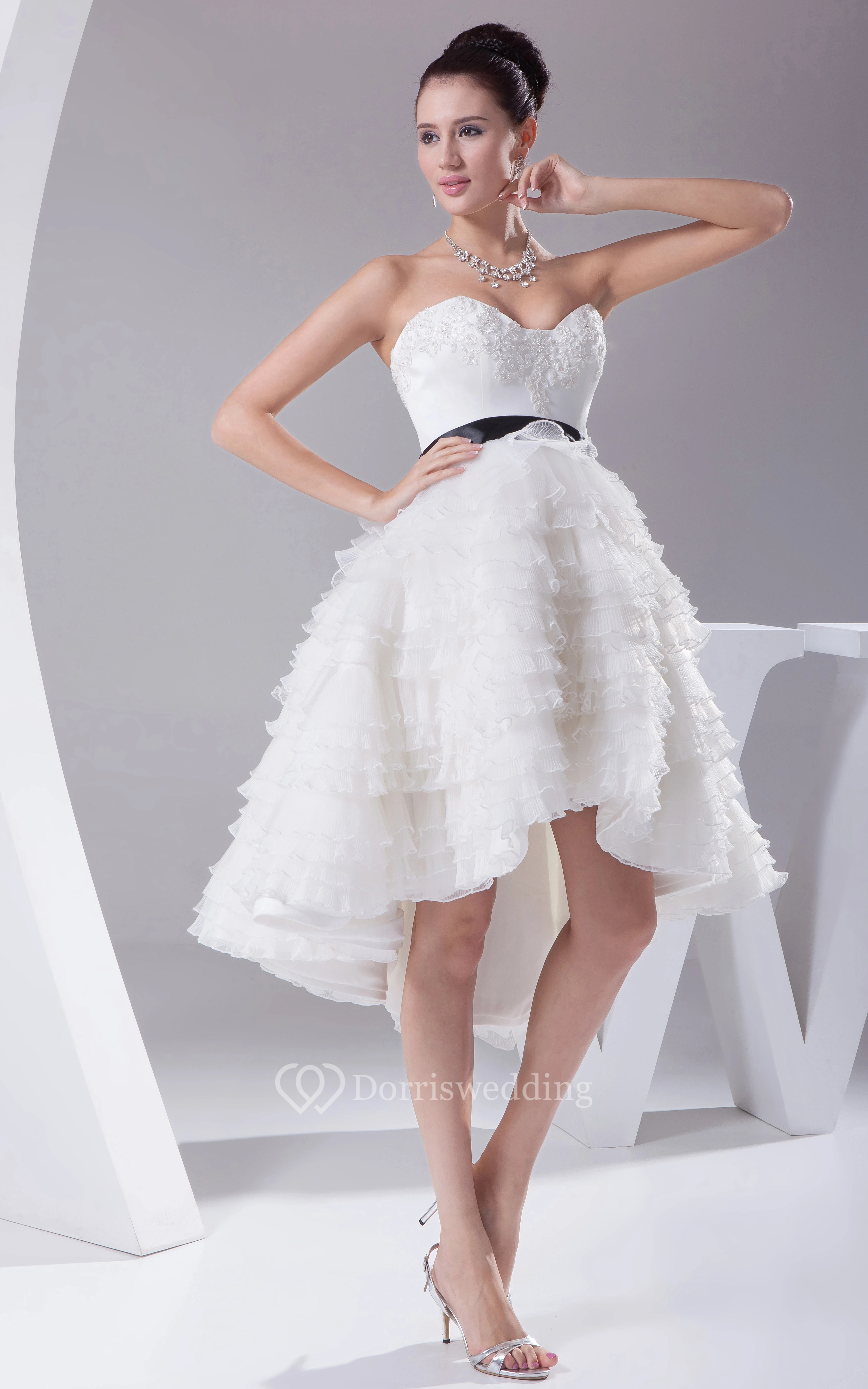 Sweetheart Appliqued High-Low Lace Short Wedding Dress Open Back
