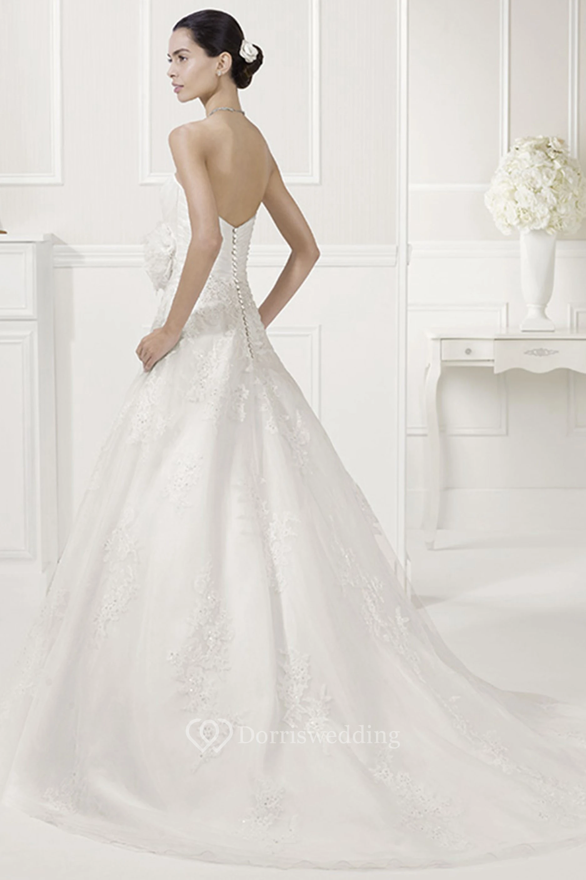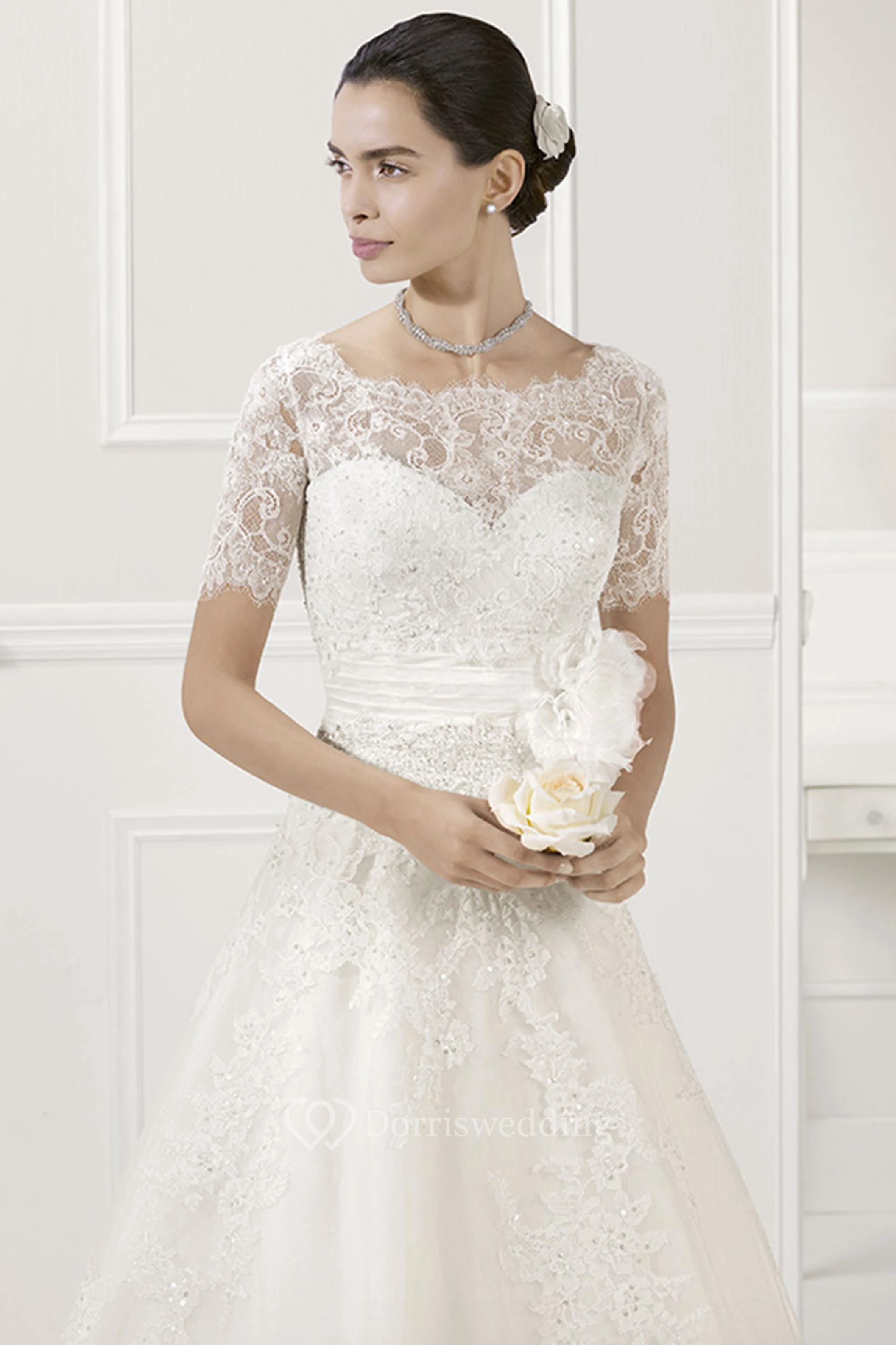 Sweetheart Appliqued Tulle Bridal Gown With Removable Lace Half Sleeves