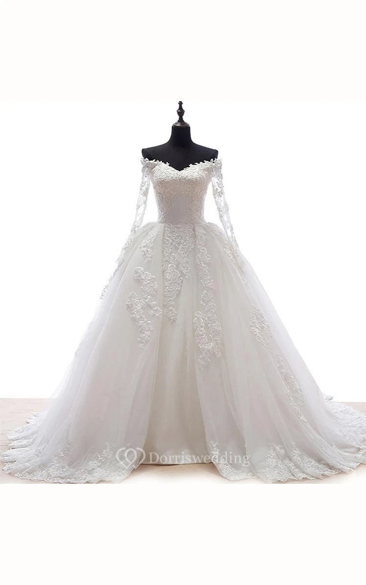 Sweetheart Appliques Tulle Lace Organza Bridal Dress