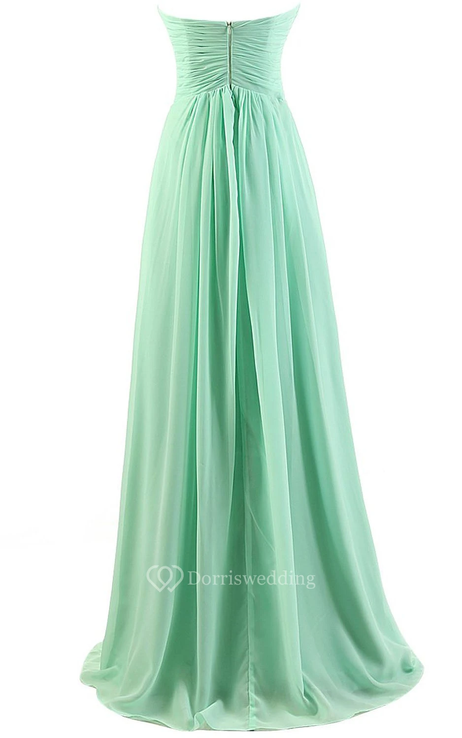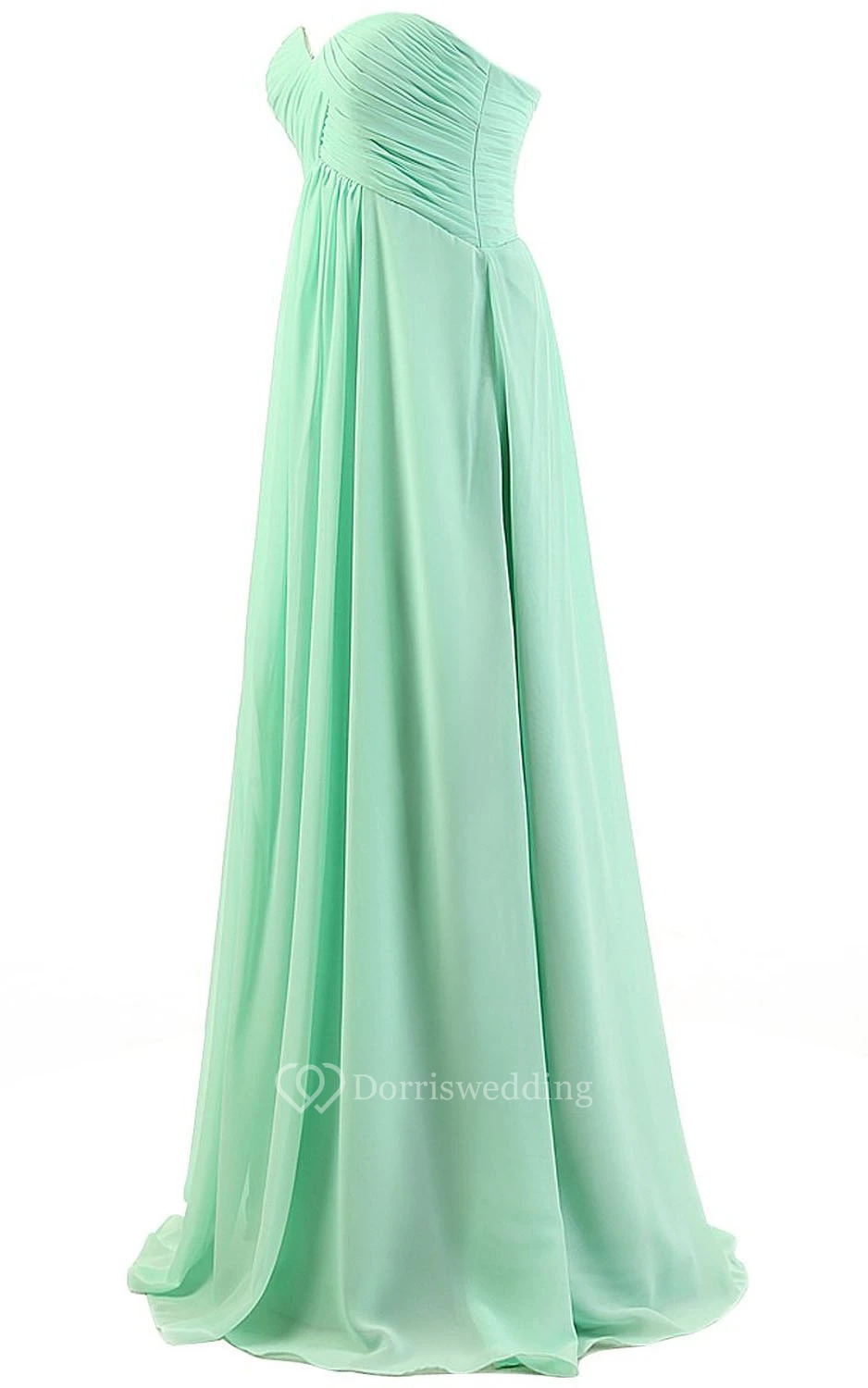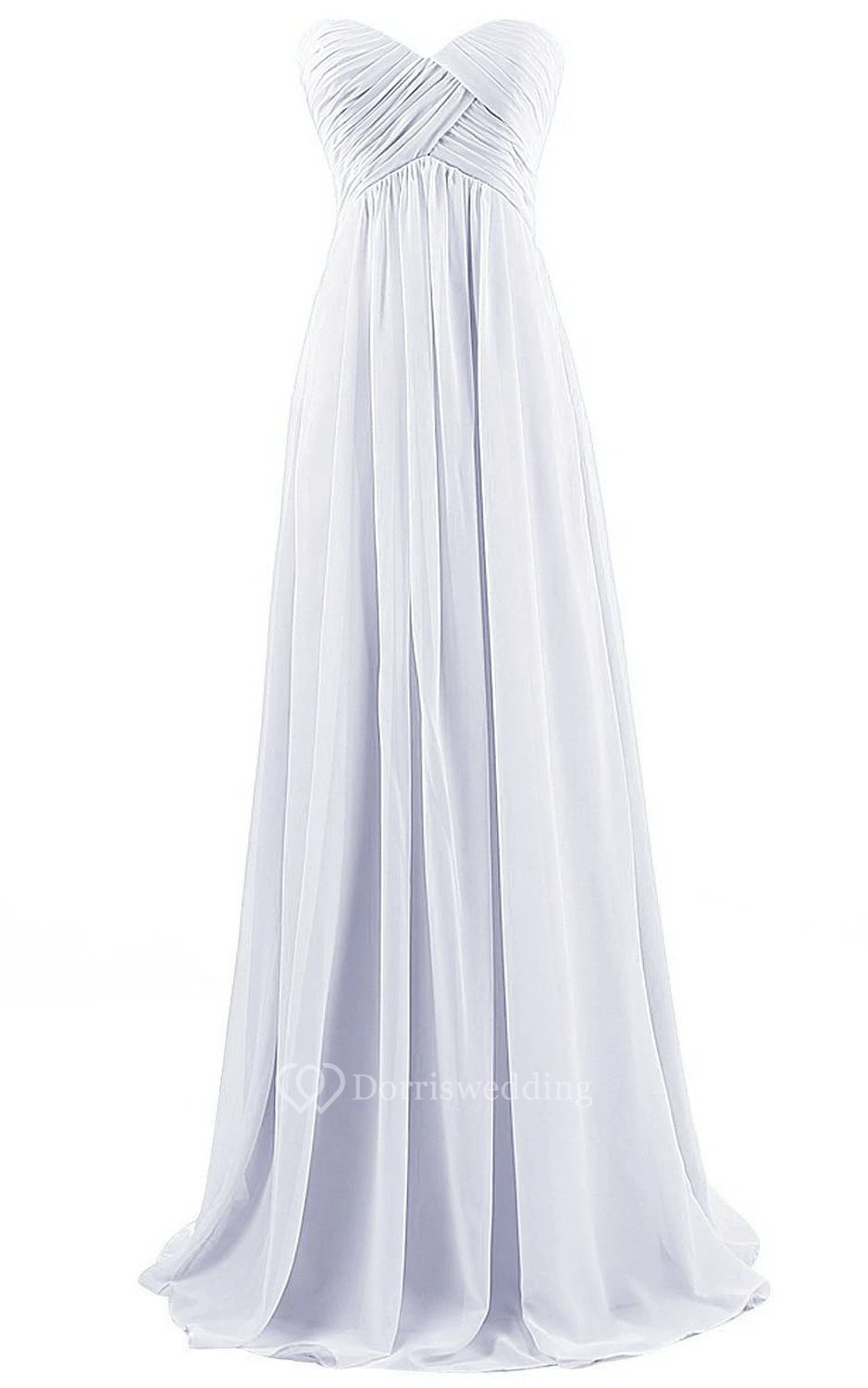Sweetheart Asymmetrical Ruched Bodice Long Pleated Chiffon Dress
