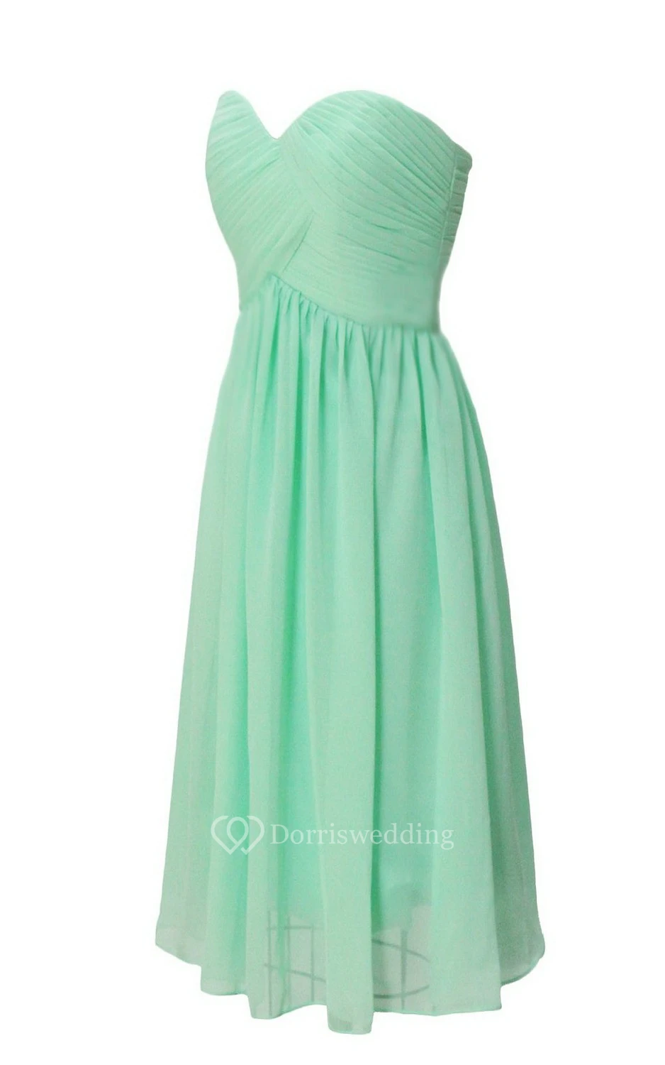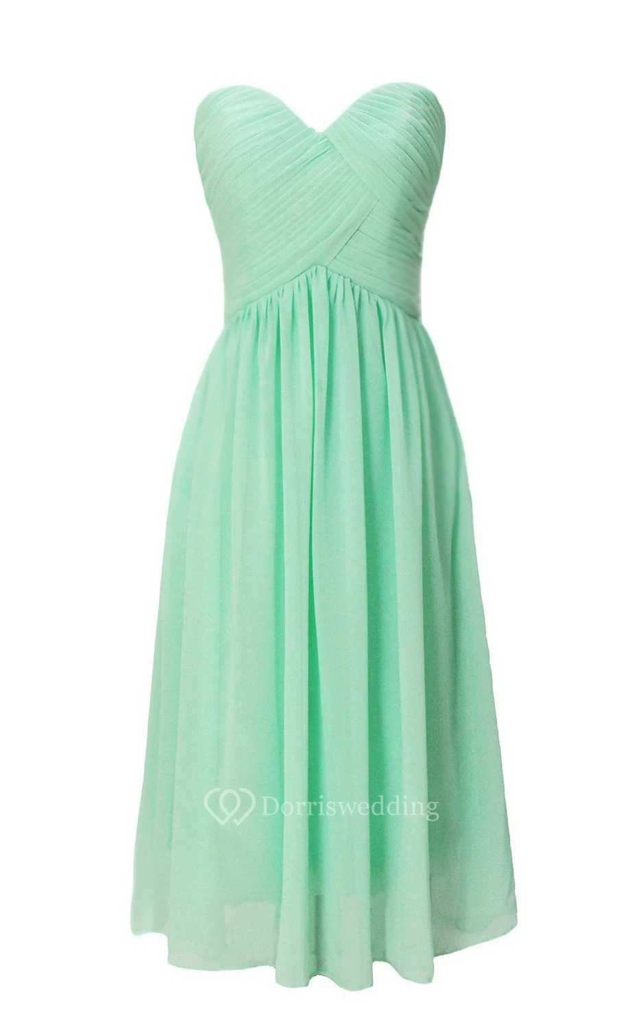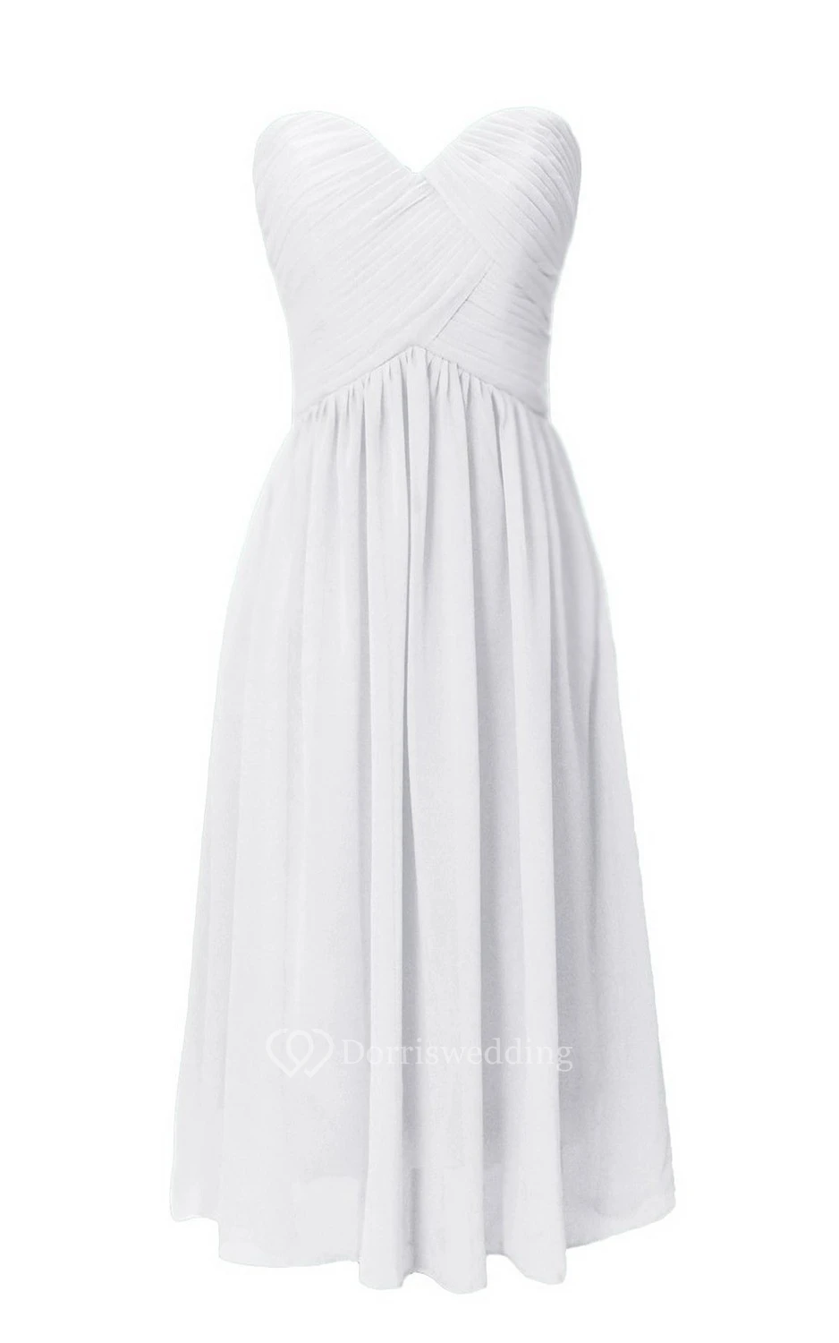 Sweetheart Asymmetrical Ruched Knee-length Chiffon Dress