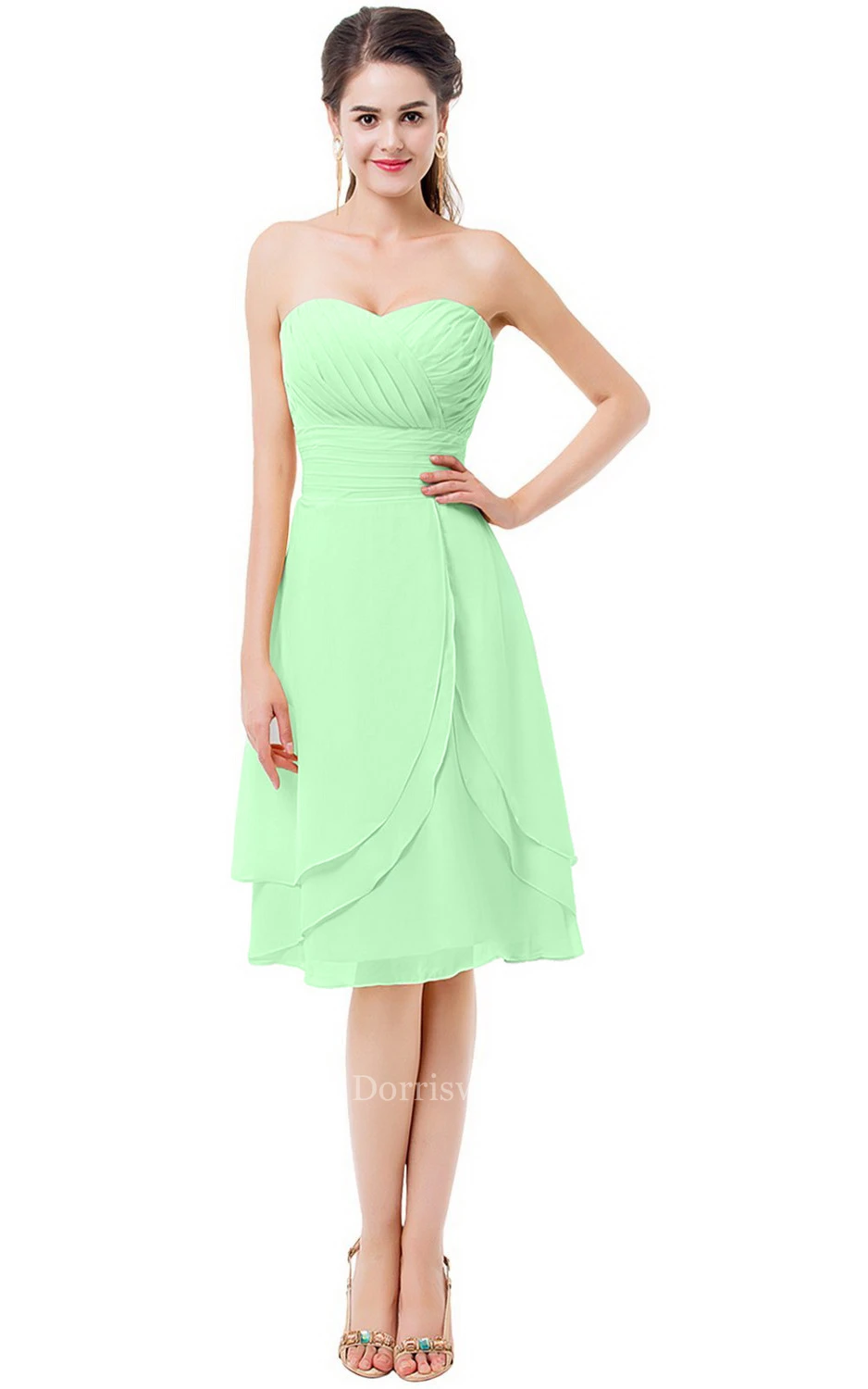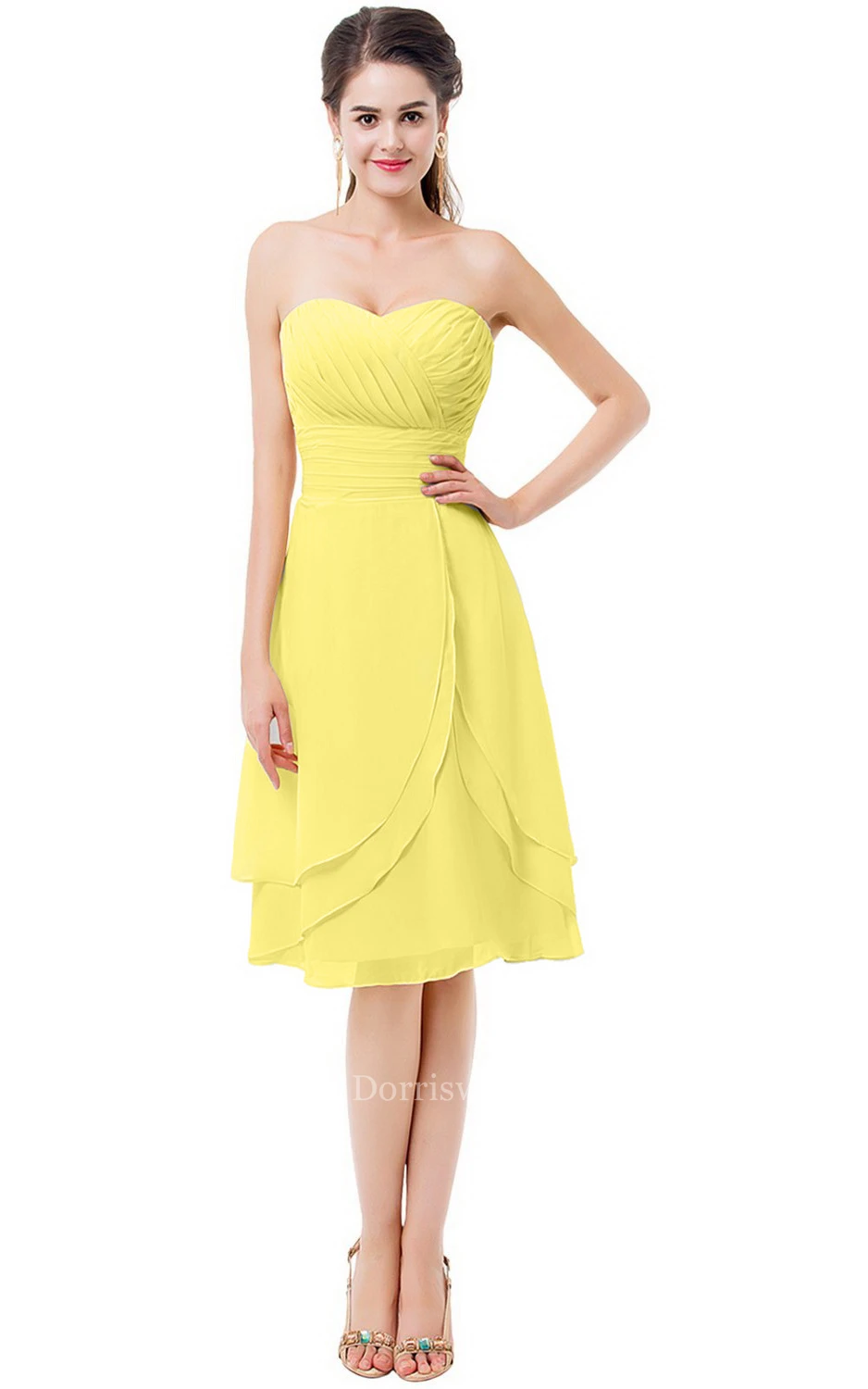 Sweetheart Asymmetrical Ruched Knee-length Layered Chiffon Dress