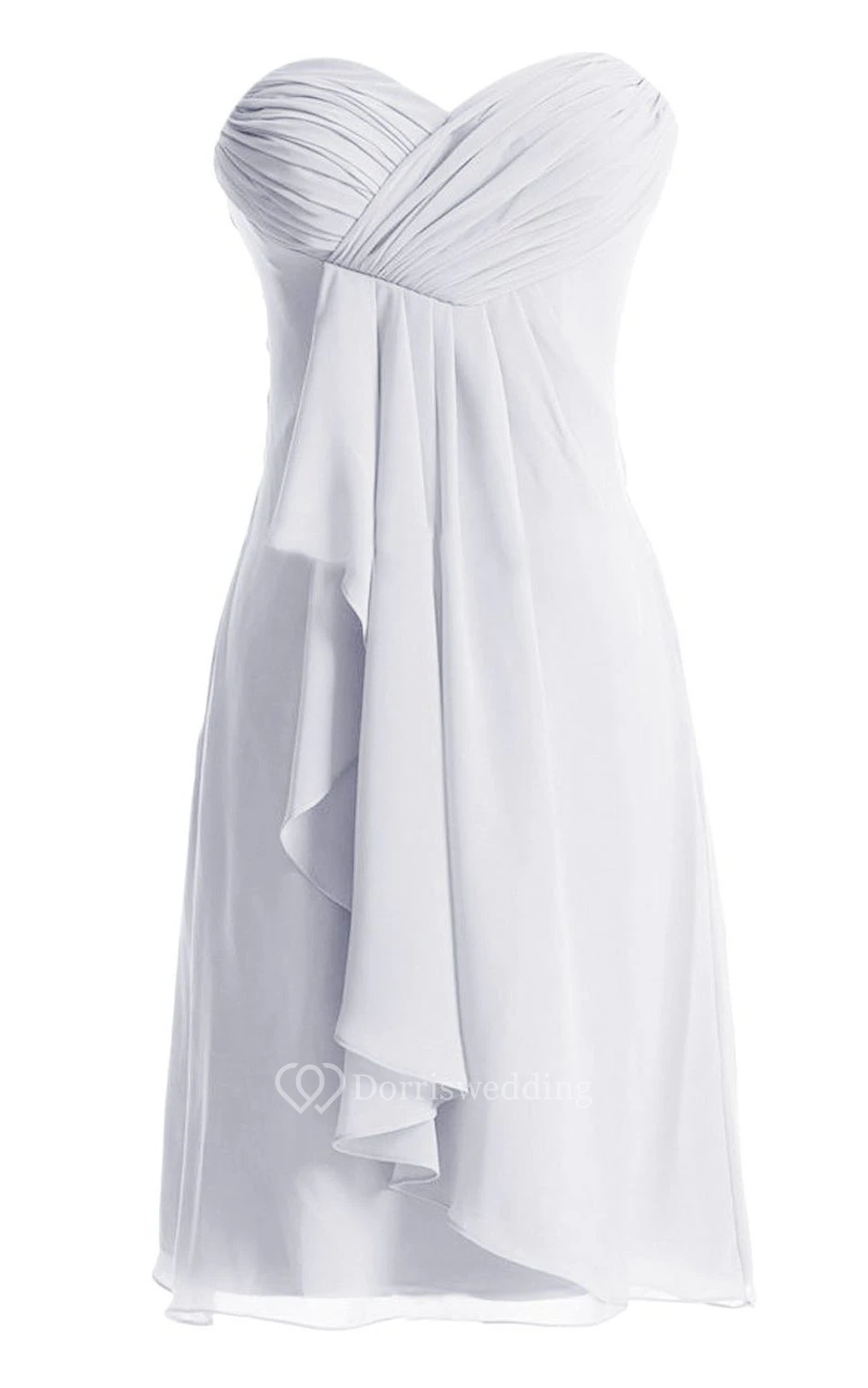 Sweetheart Asymmetrical Ruched Short Layered Chiffon Dress