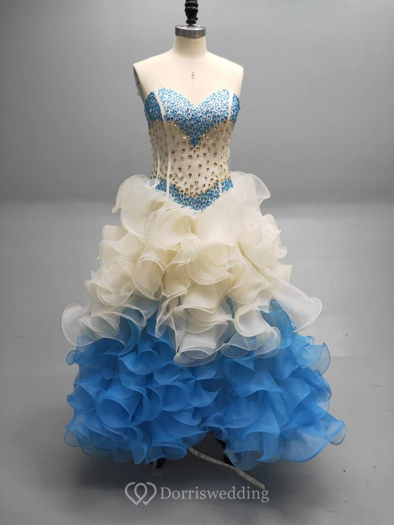 Sweetheart Ball Gown With Cascading Ruffles And A Matching Collar
