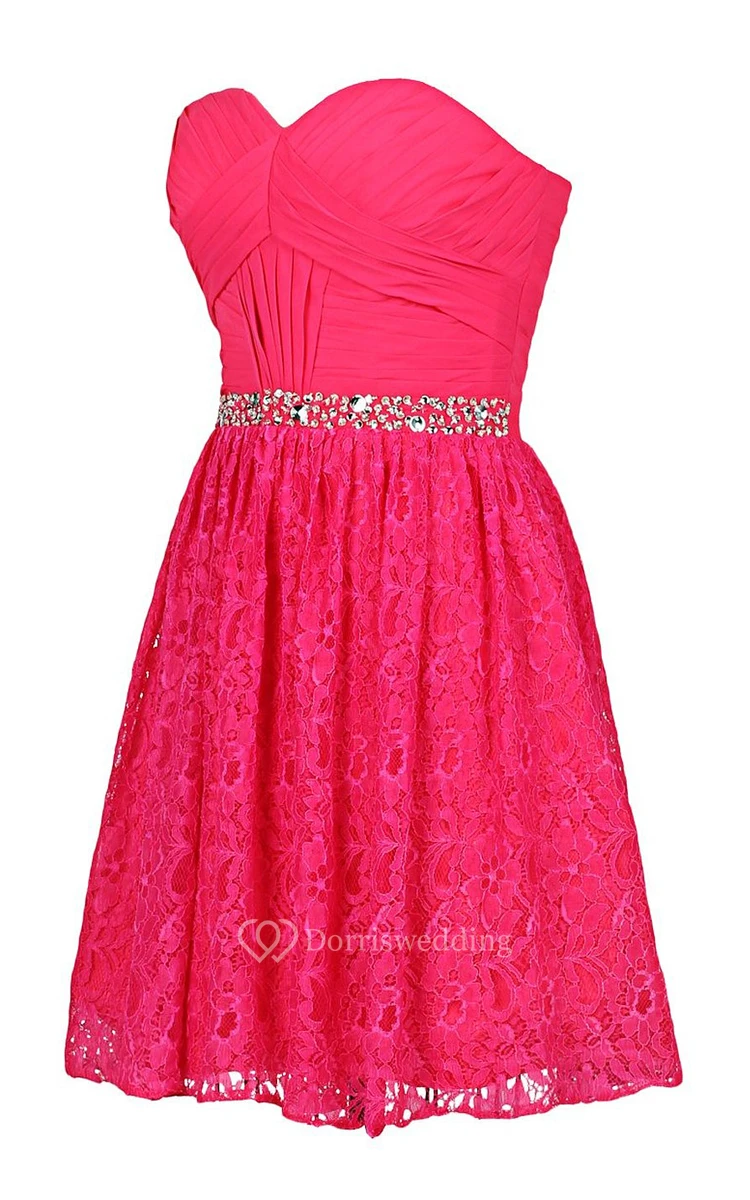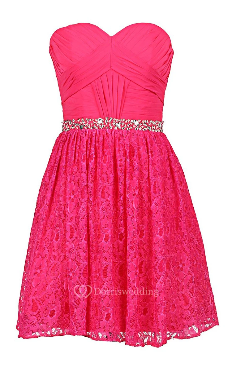 Sweetheart Basque Lace Dress With Beading Embellishments