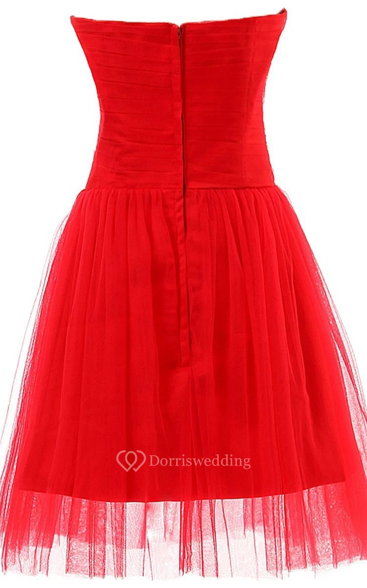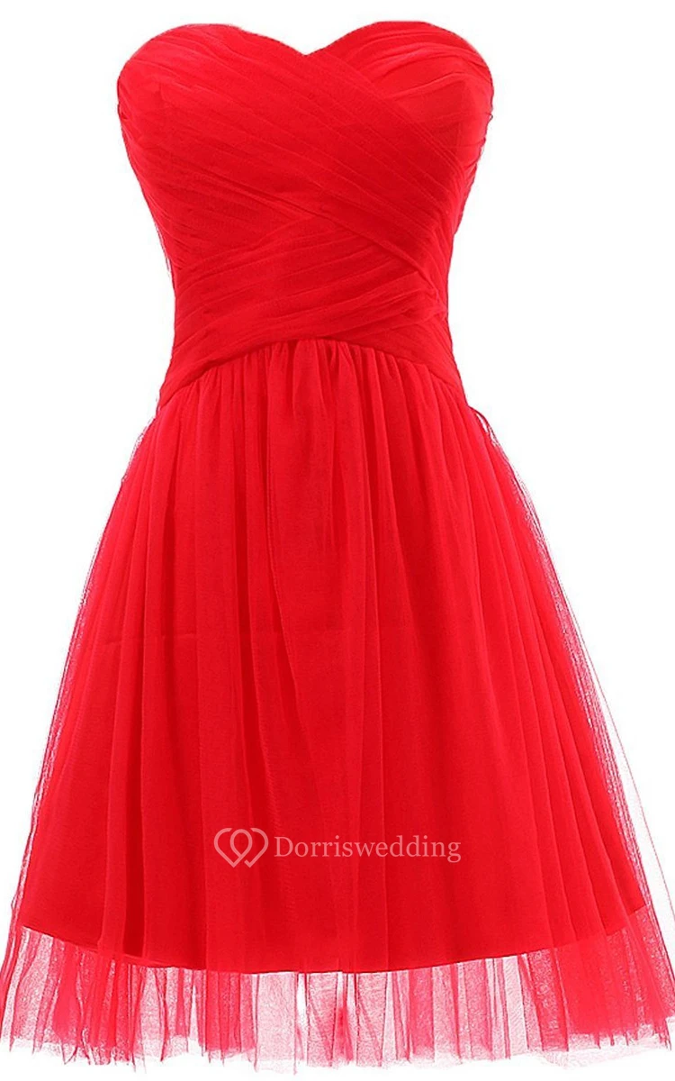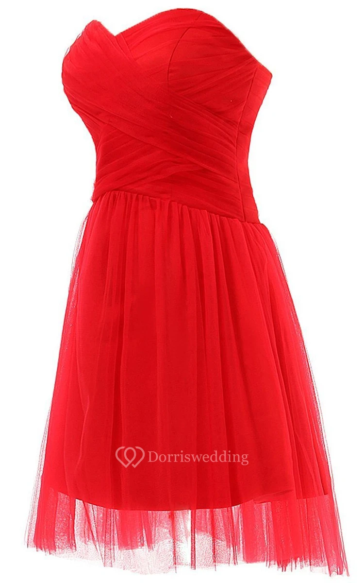 Sweetheart Basque Waist Dress With Tulle Overlay