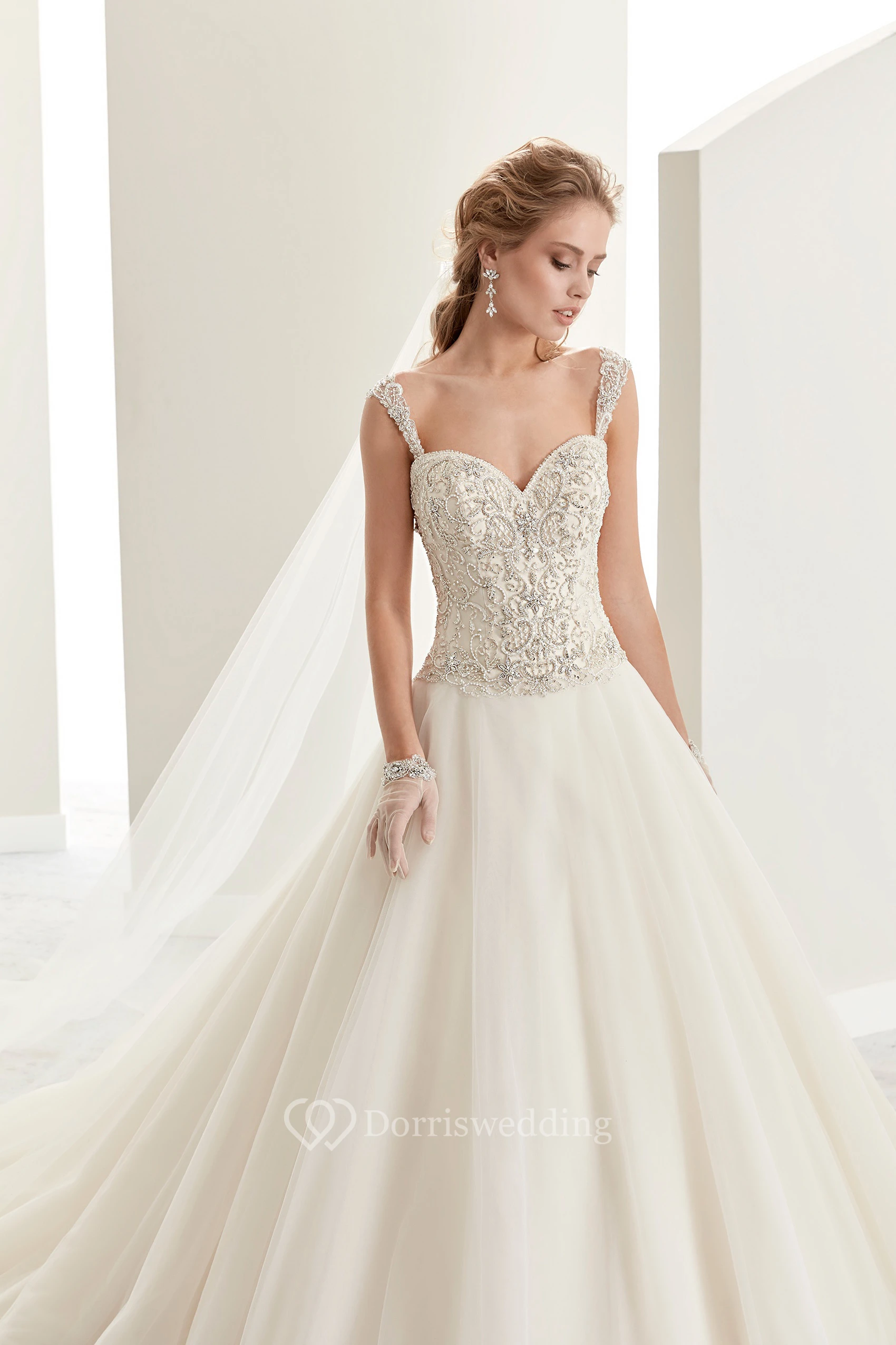• Hemline/Train: Floor-length