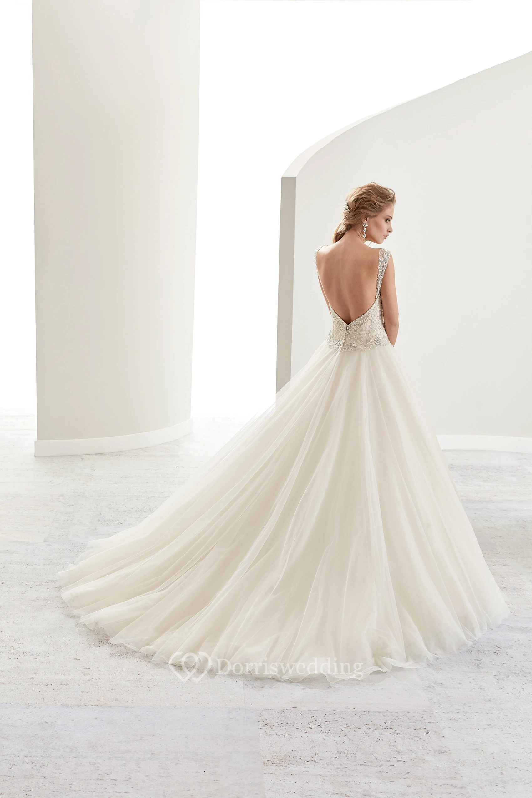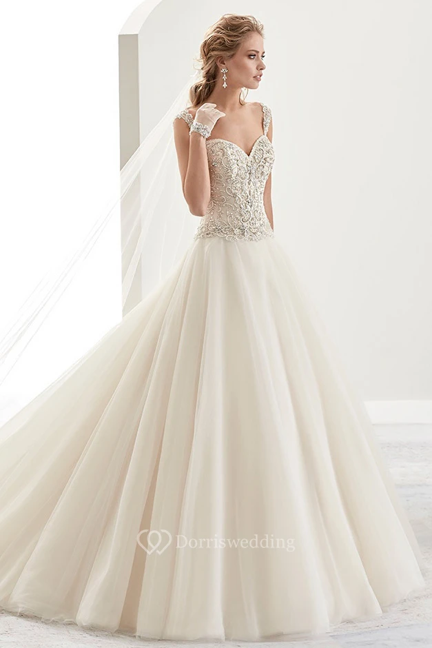 Sweetheart Beaded A-Line Bridal Gown With Open Back And Brush Train