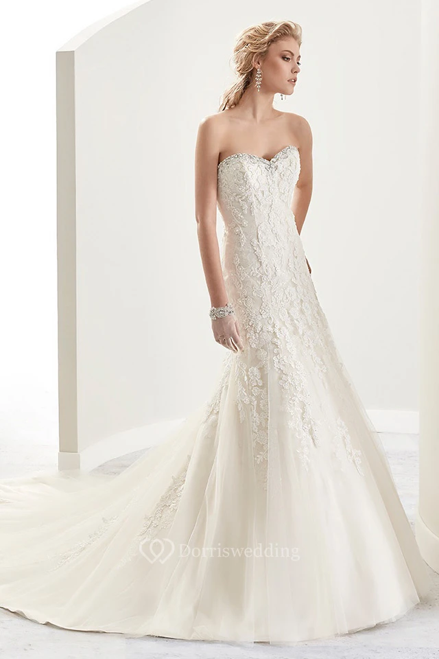 Sweetheart Beaded Lace Gown With Appliques And Court Train And Half Back