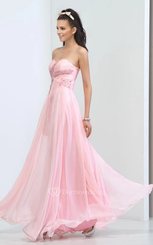 Sweetheart Beaded Pleats Long Prom Dress