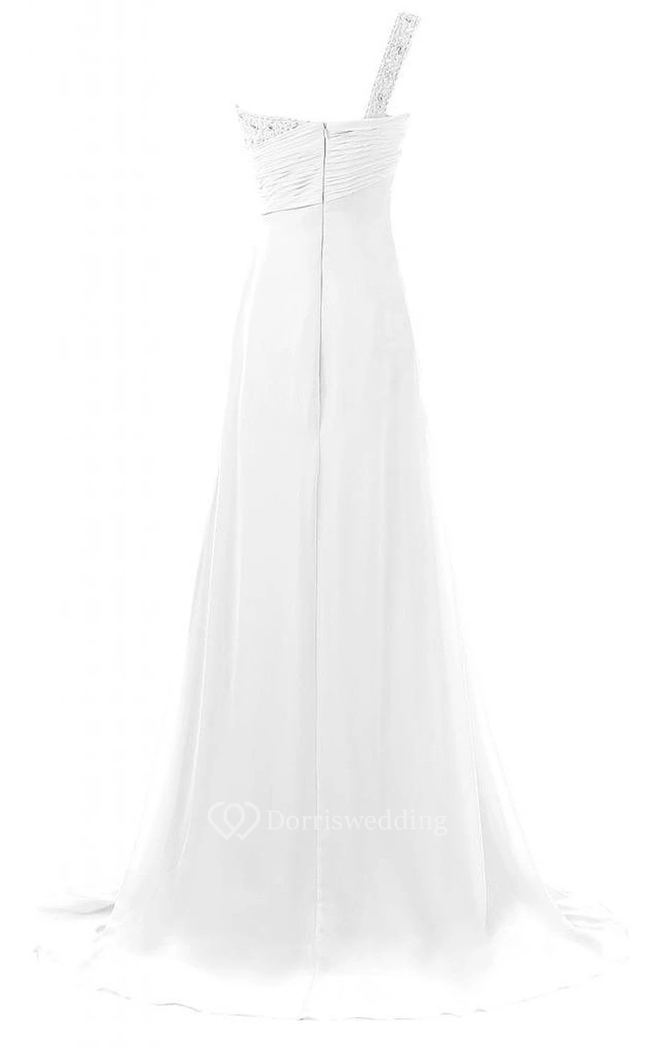 Sweetheart Beaded Ruhced Bodice Long Chiffon Dress