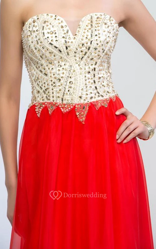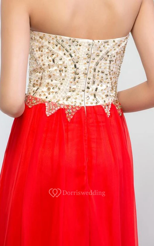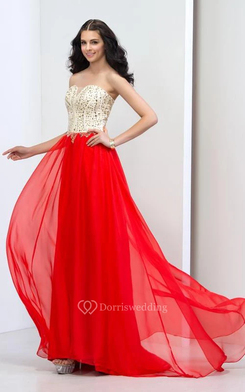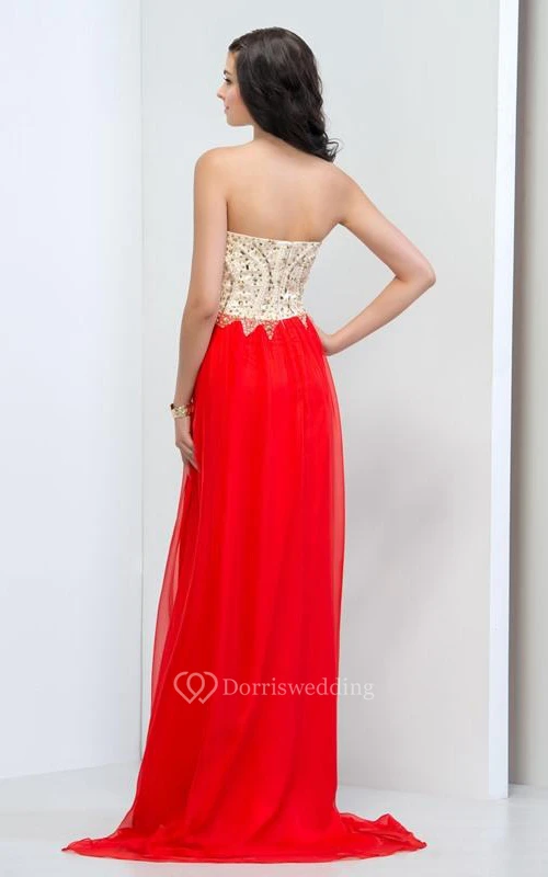 Sweetheart Beading Sequins Sweep Train Prom Dresss