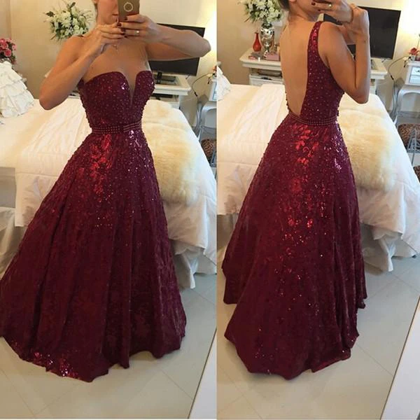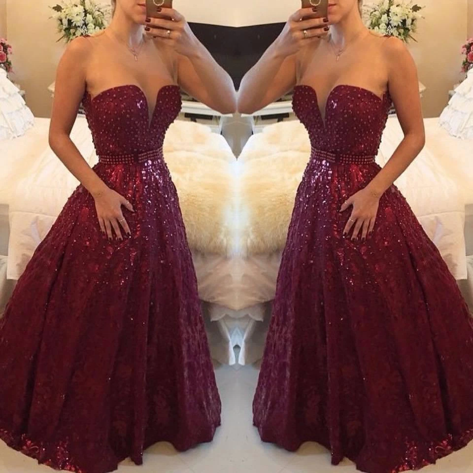 Sweetheart Beadings A-Line Evening Dresses Sexy Floor Length Prom Gowns