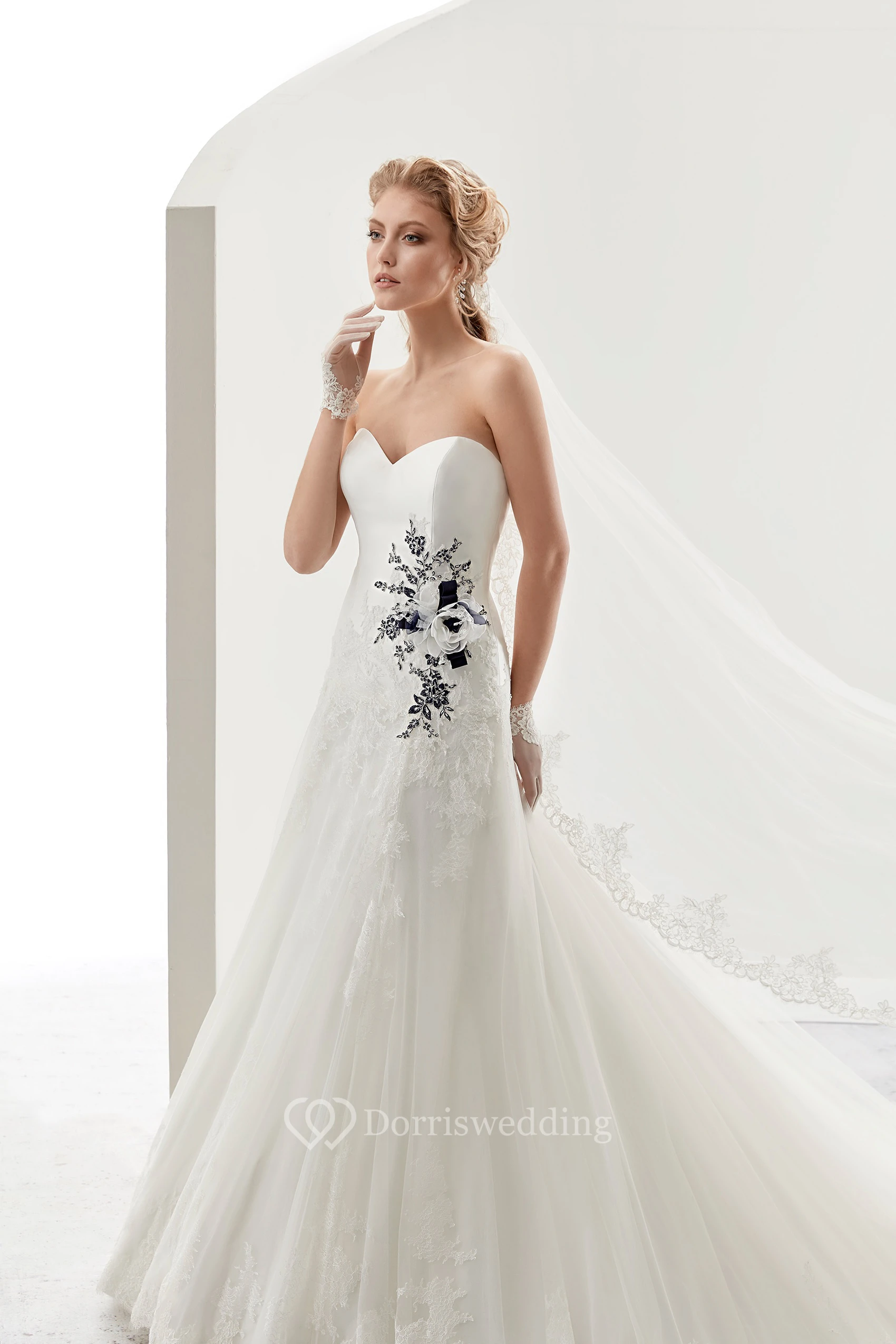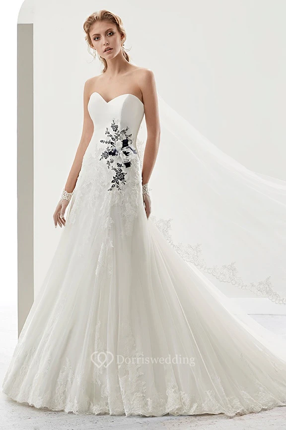 Sweetheart Bridal Gown With Striking Floral Appliques And Brush Train