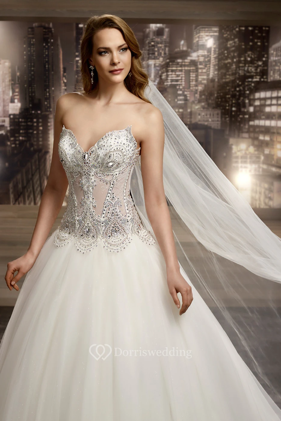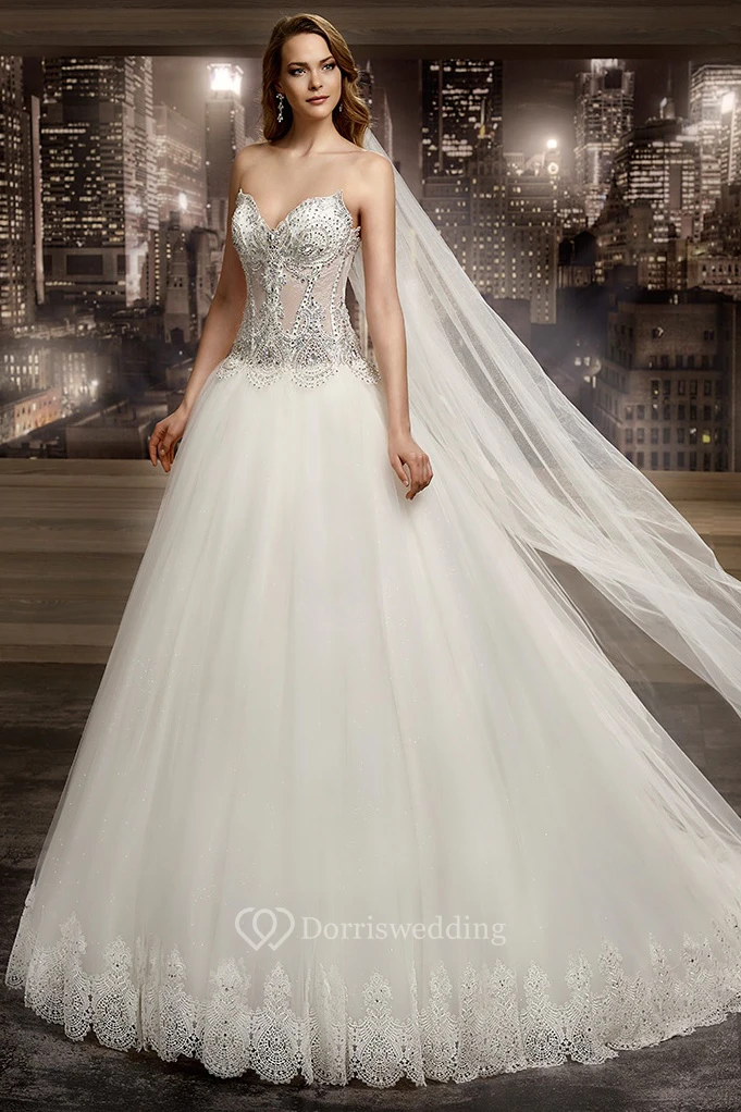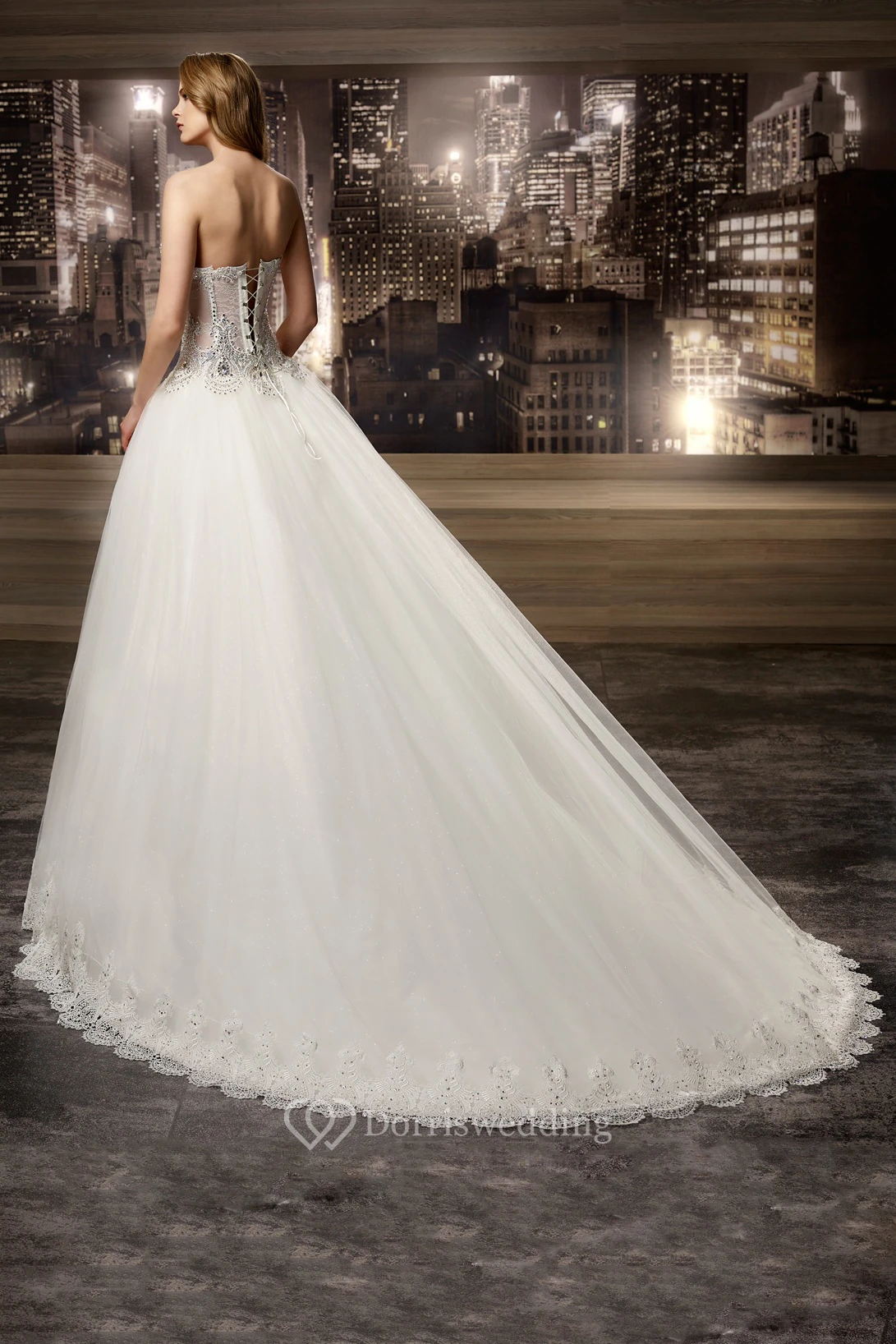 Sweetheart Brush-train A-line Wedding Dress with Beaded Corset