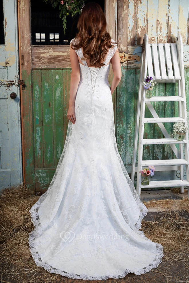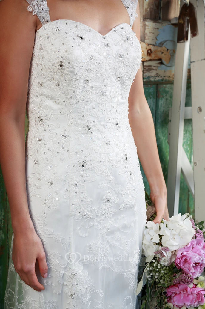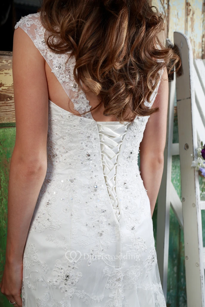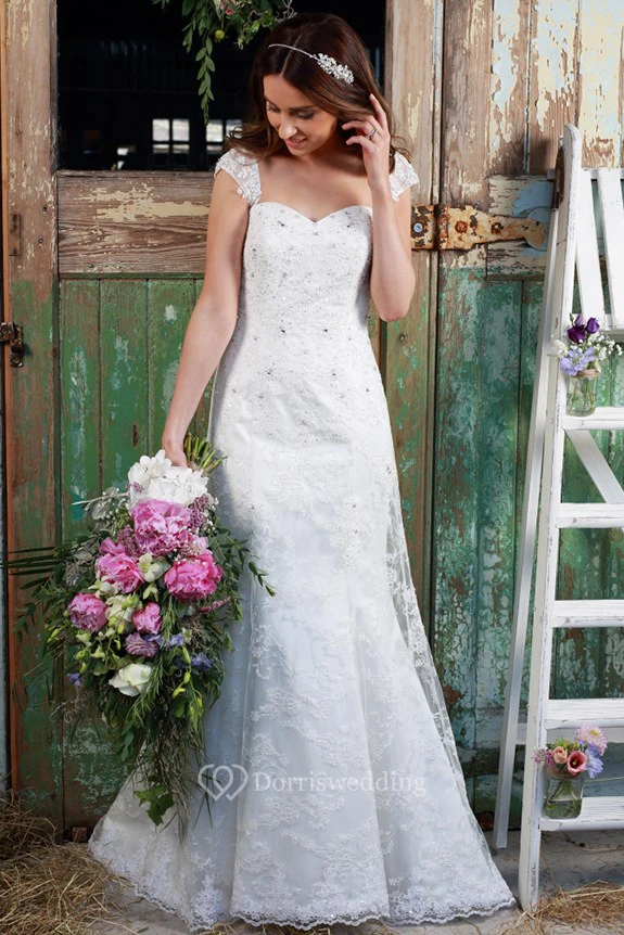 Sweetheart Cap-Sleeve Appliqued Lace Wedding Dress With Beading And Lace Up