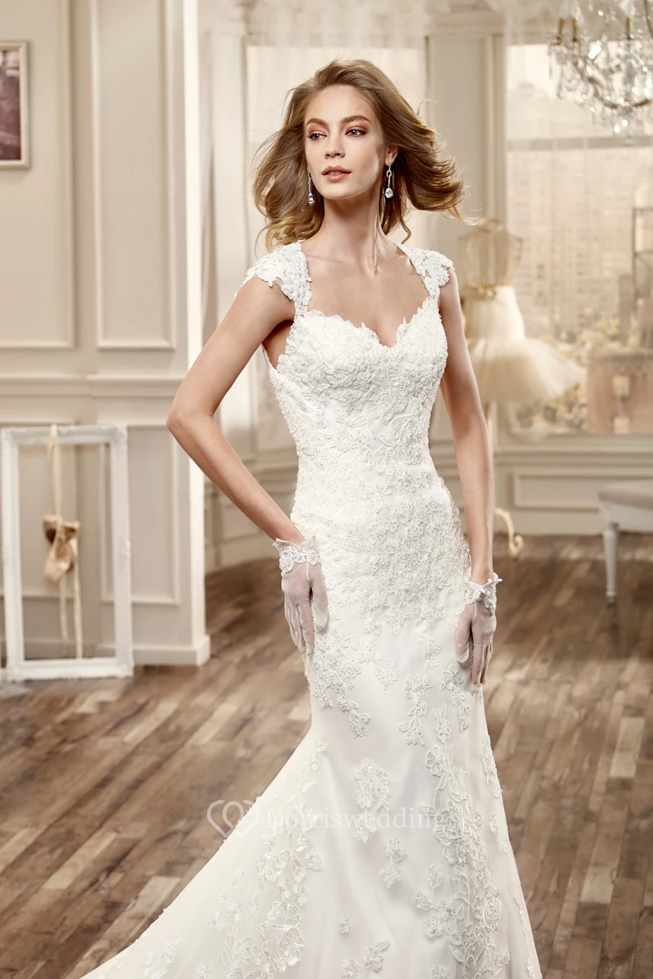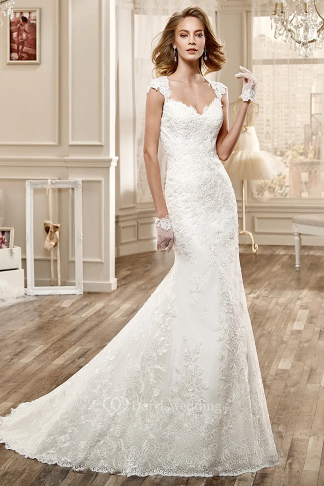 Sweetheart Cap-Sleeve Lace Wedding Dress With Brush Train And Open Back