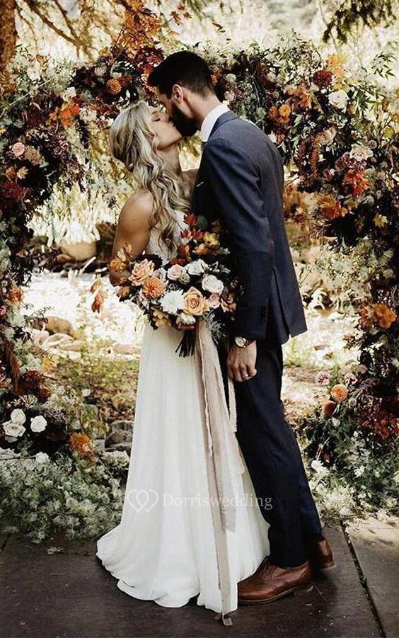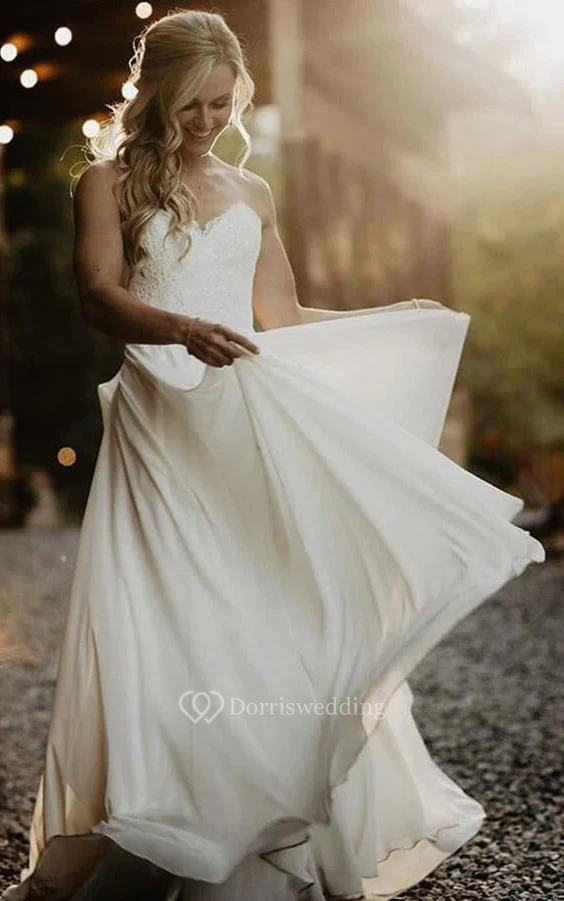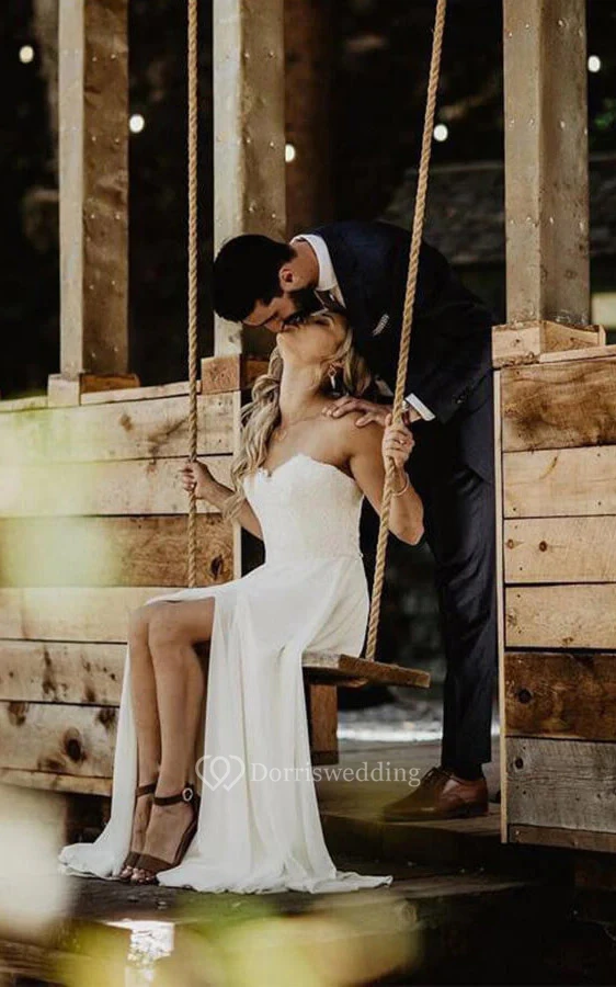 Sweetheart Casual Chiffon Front Split Country Wedding Dress with Two Piece
