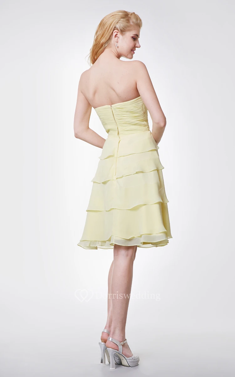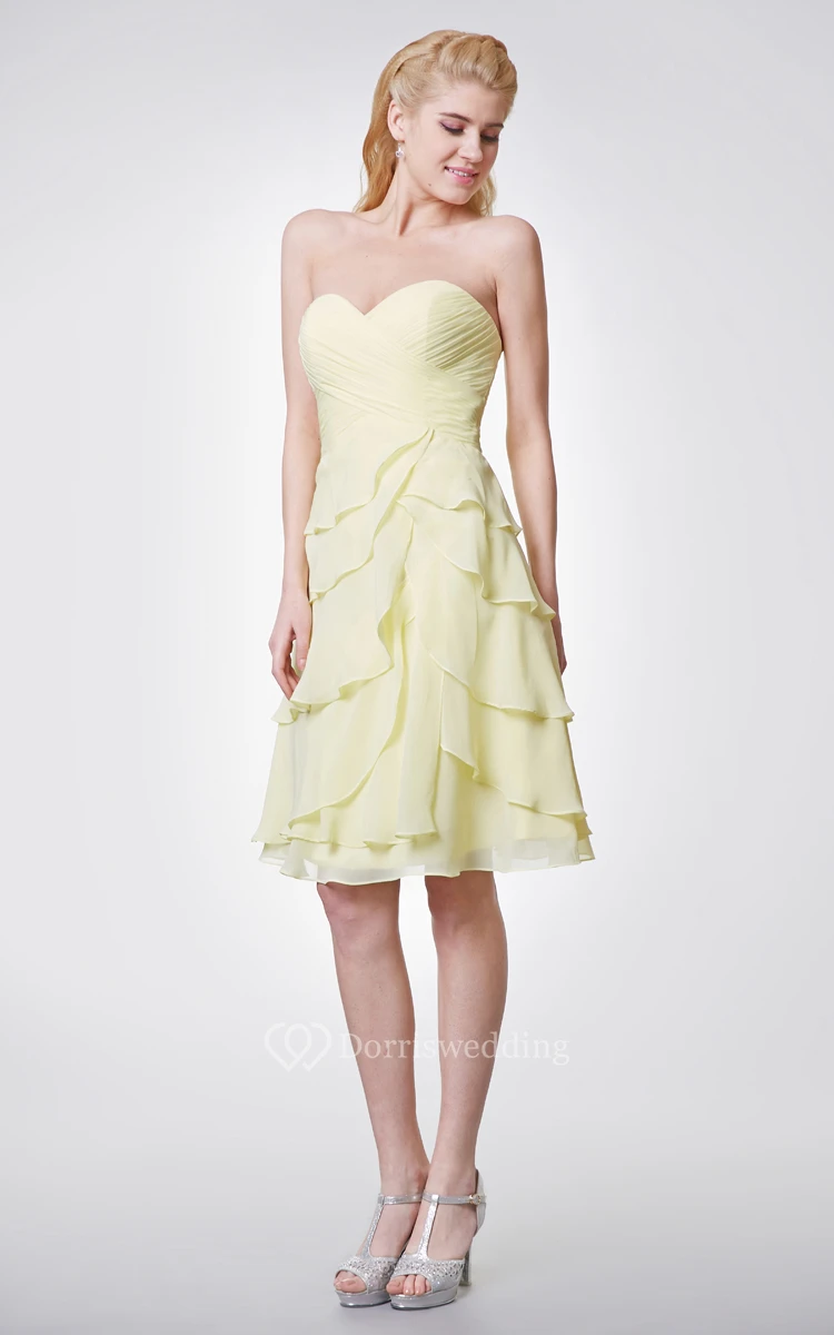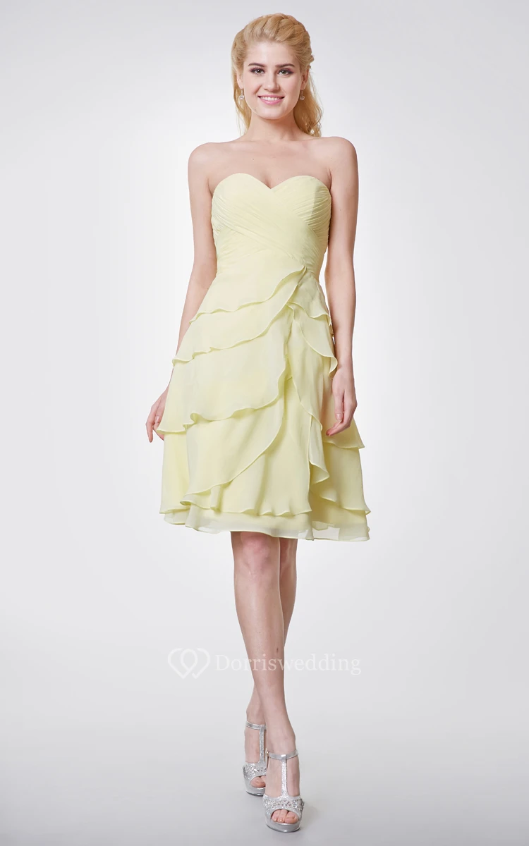 Sweetheart Chiffon Knee Length Dress With Layers