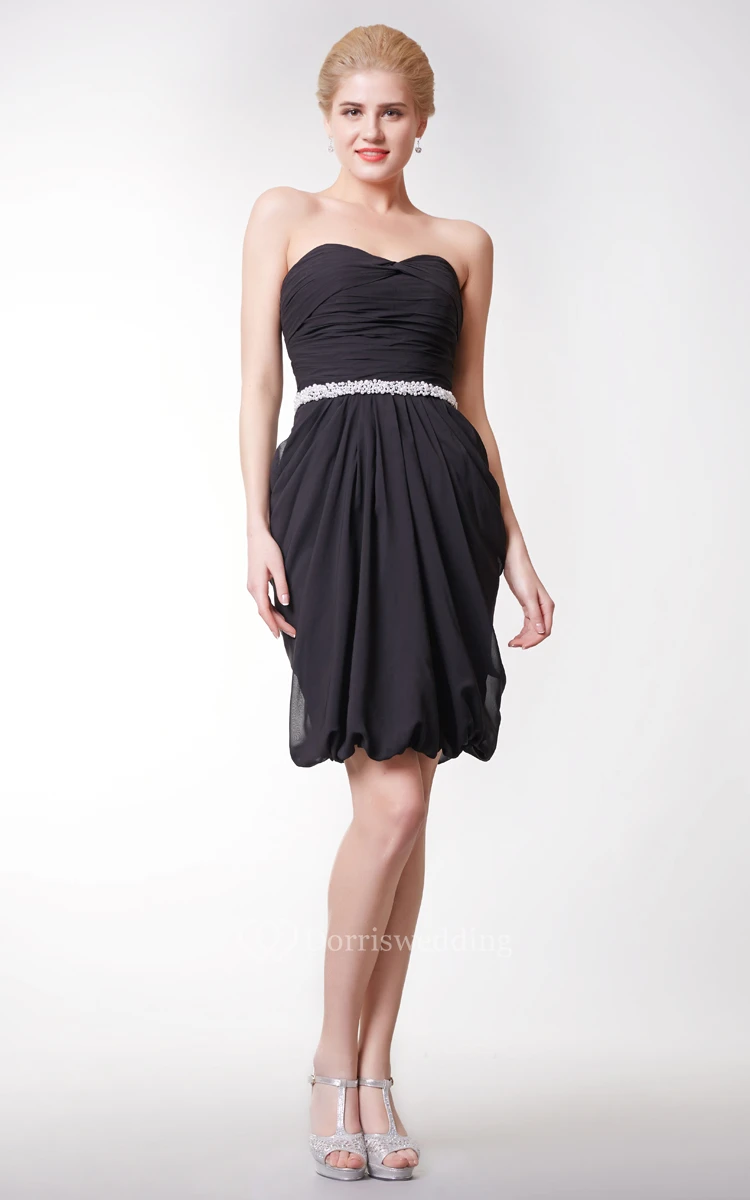 Sweetheart Chiffon Short Dress With Beaded Waist