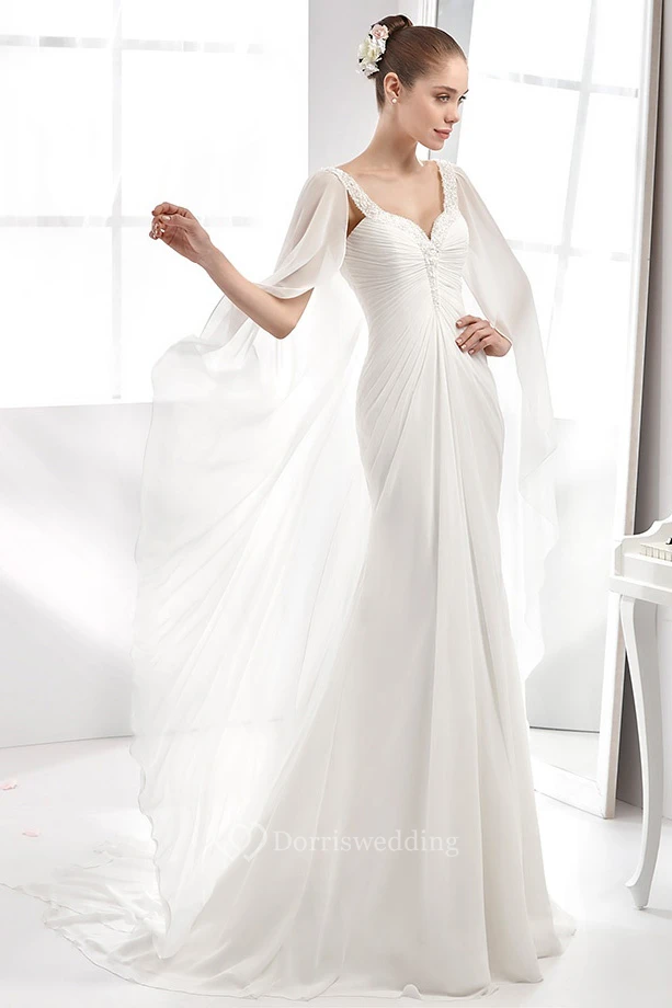 Sweetheart Chiffon Wedding Dress With Front Draping And Beaded Bust