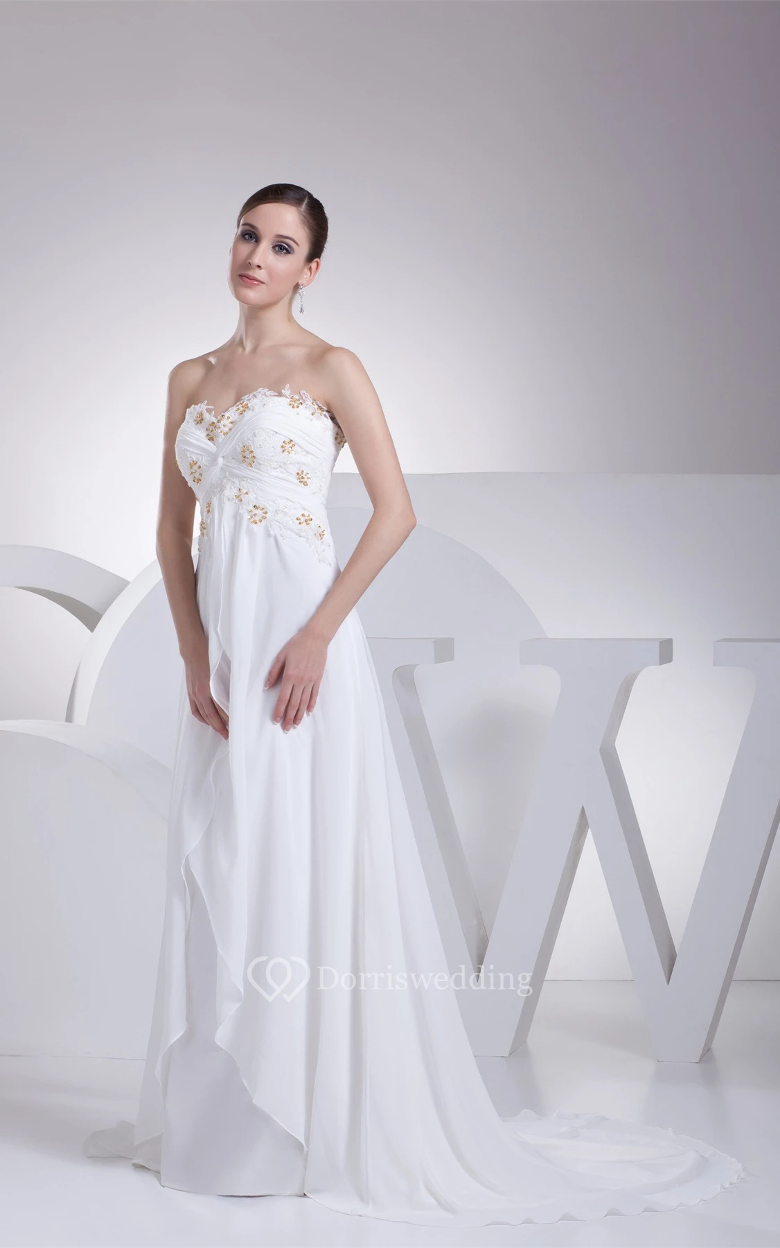 Sweetheart Criss-Cross Appliqued Stress and Dress With Pleats