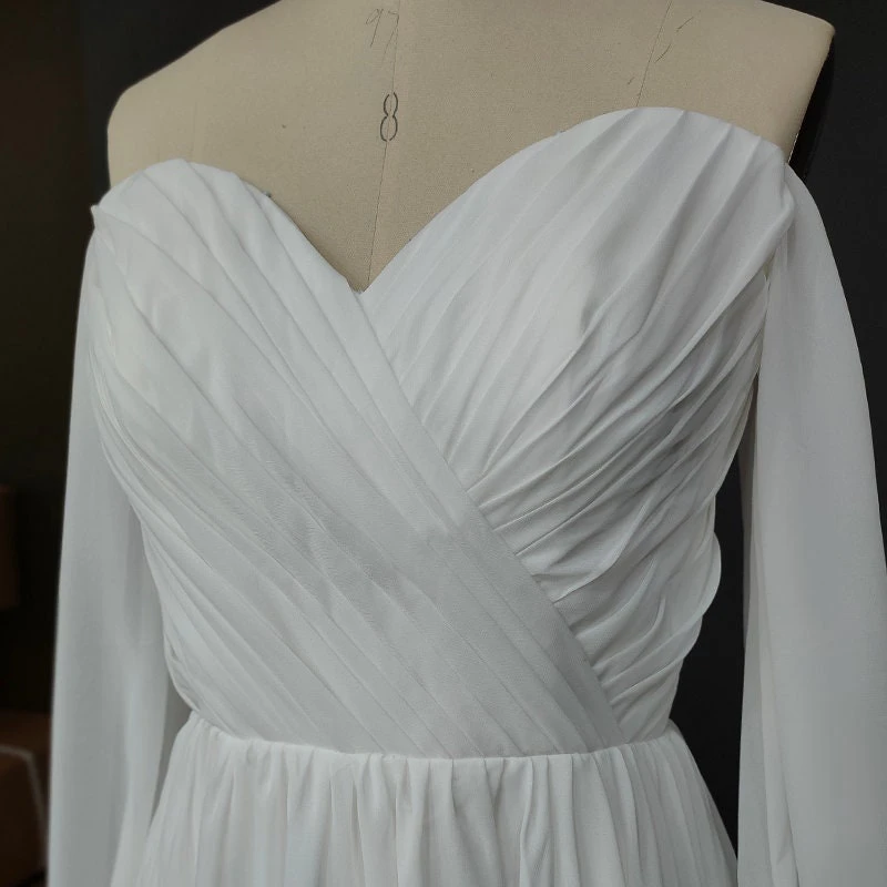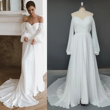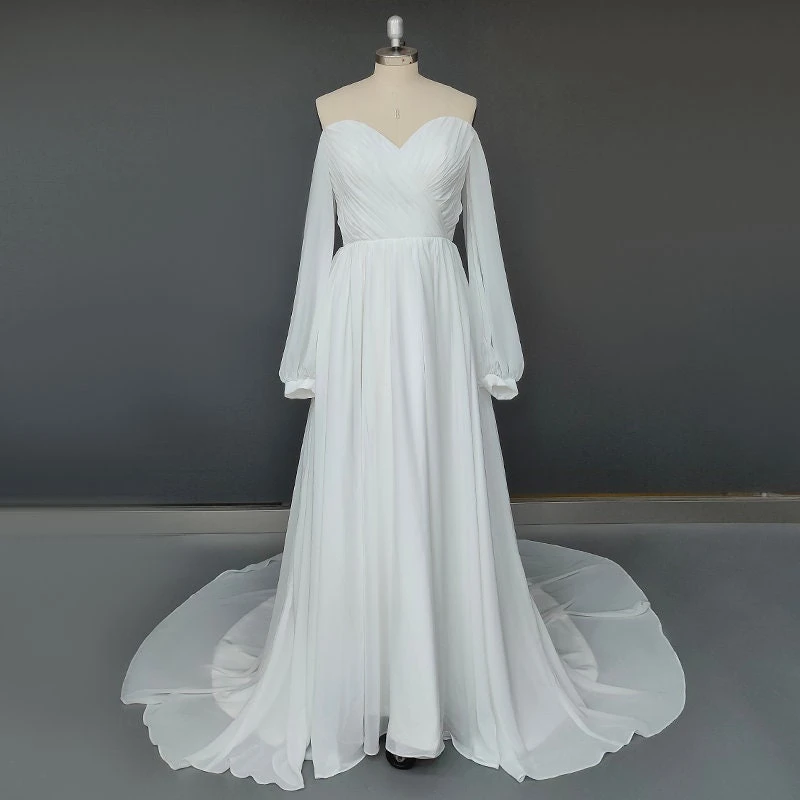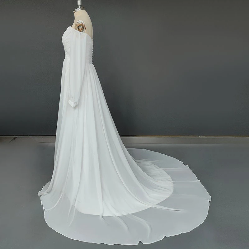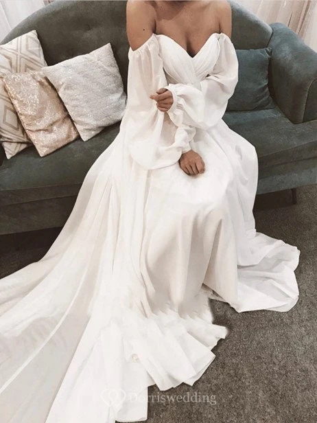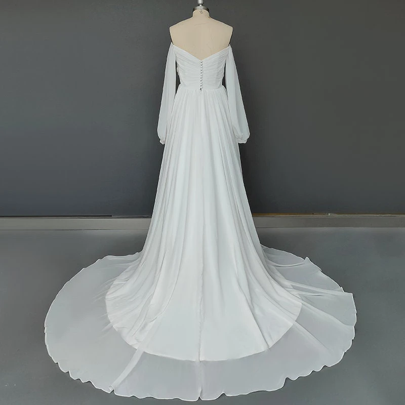 Sweetheart Criss-cross Puff-sleeve Flowy Wedding Dress with Sweep Train